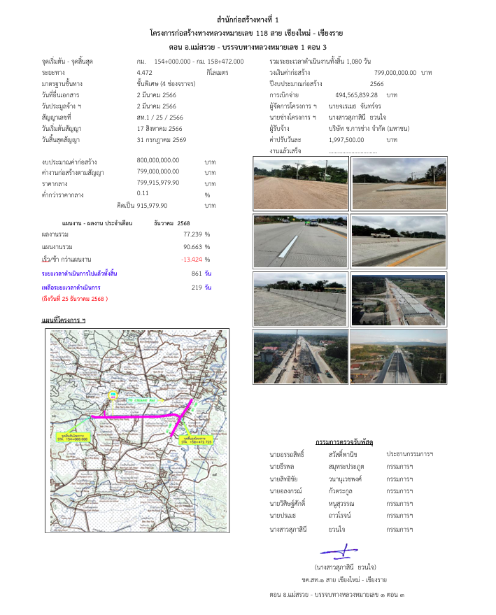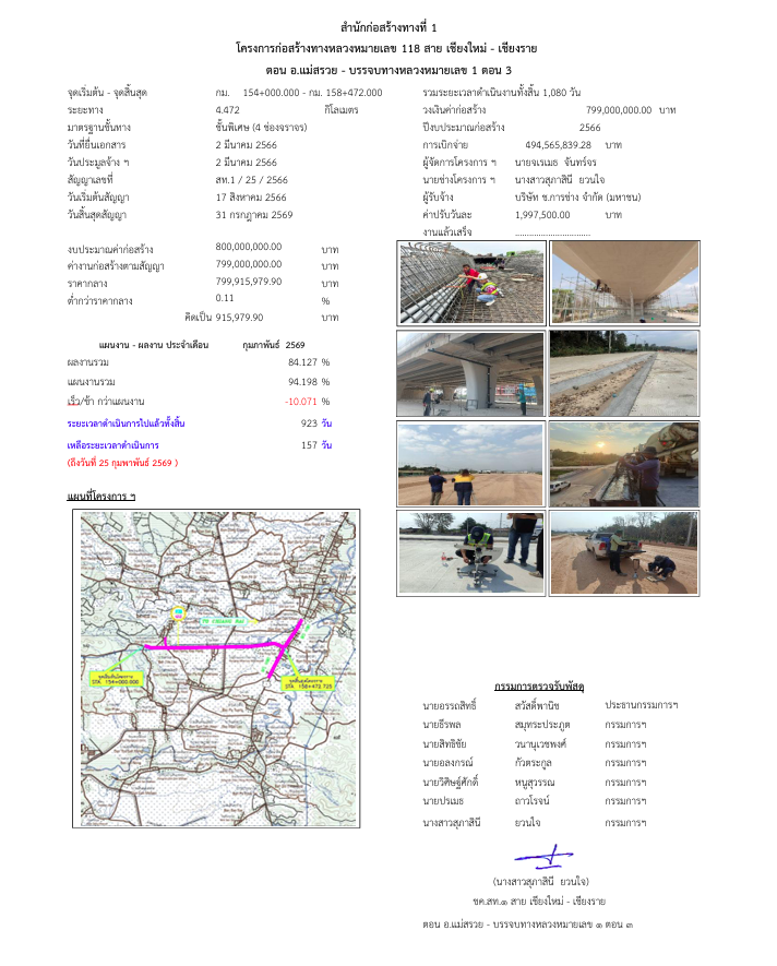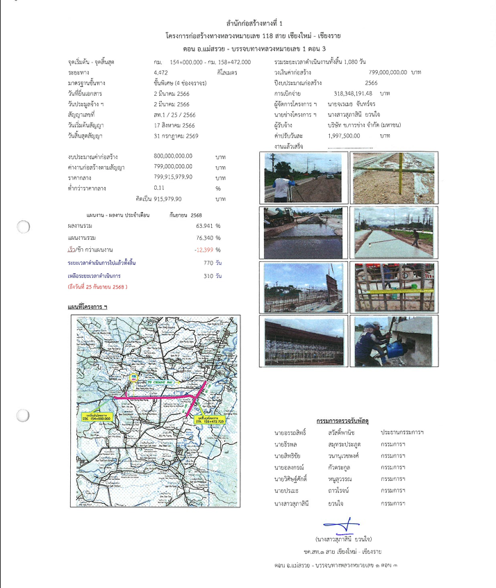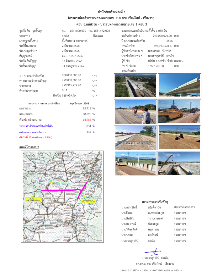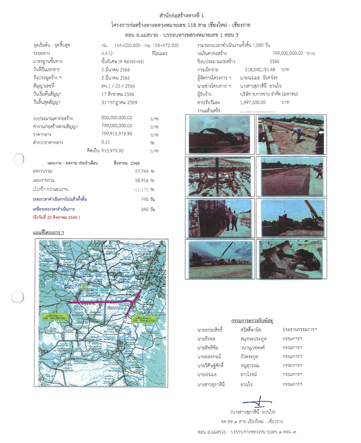 ก่อสร้างทางหลวงหมายเลข 118 สาย เชียงใหม่ - เชียงราย ตอน อ.แม่สรวย - บรรจบทางหลวงหมายเลข 1 ตอน 3