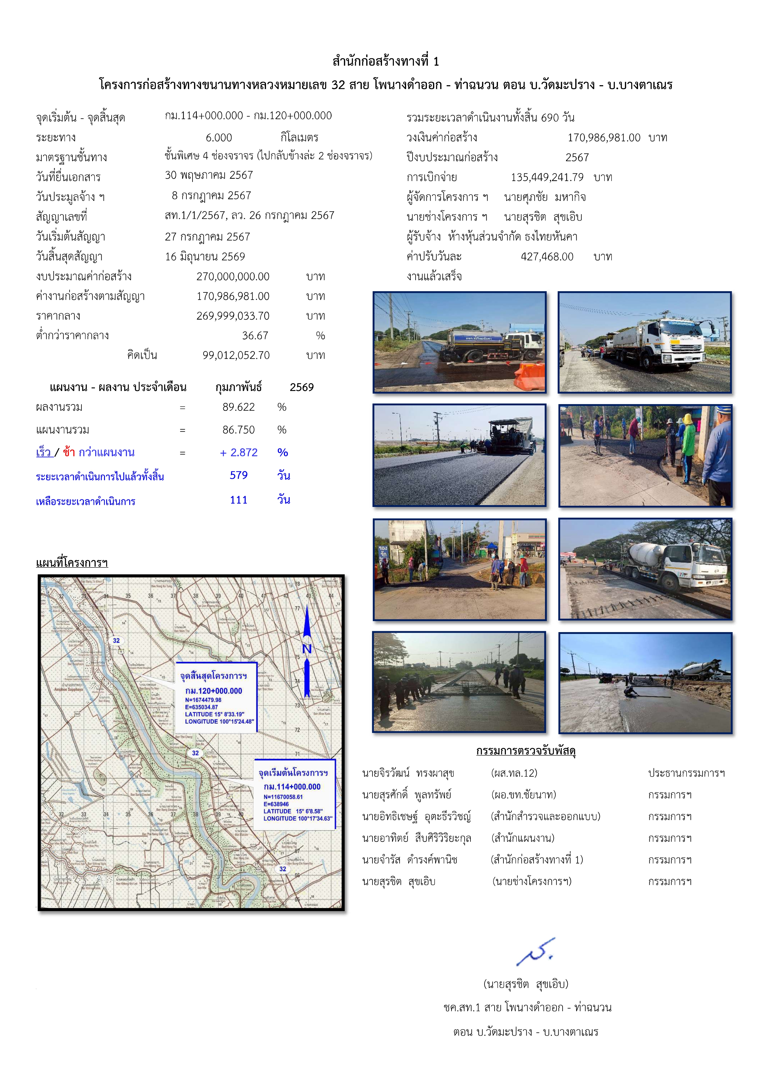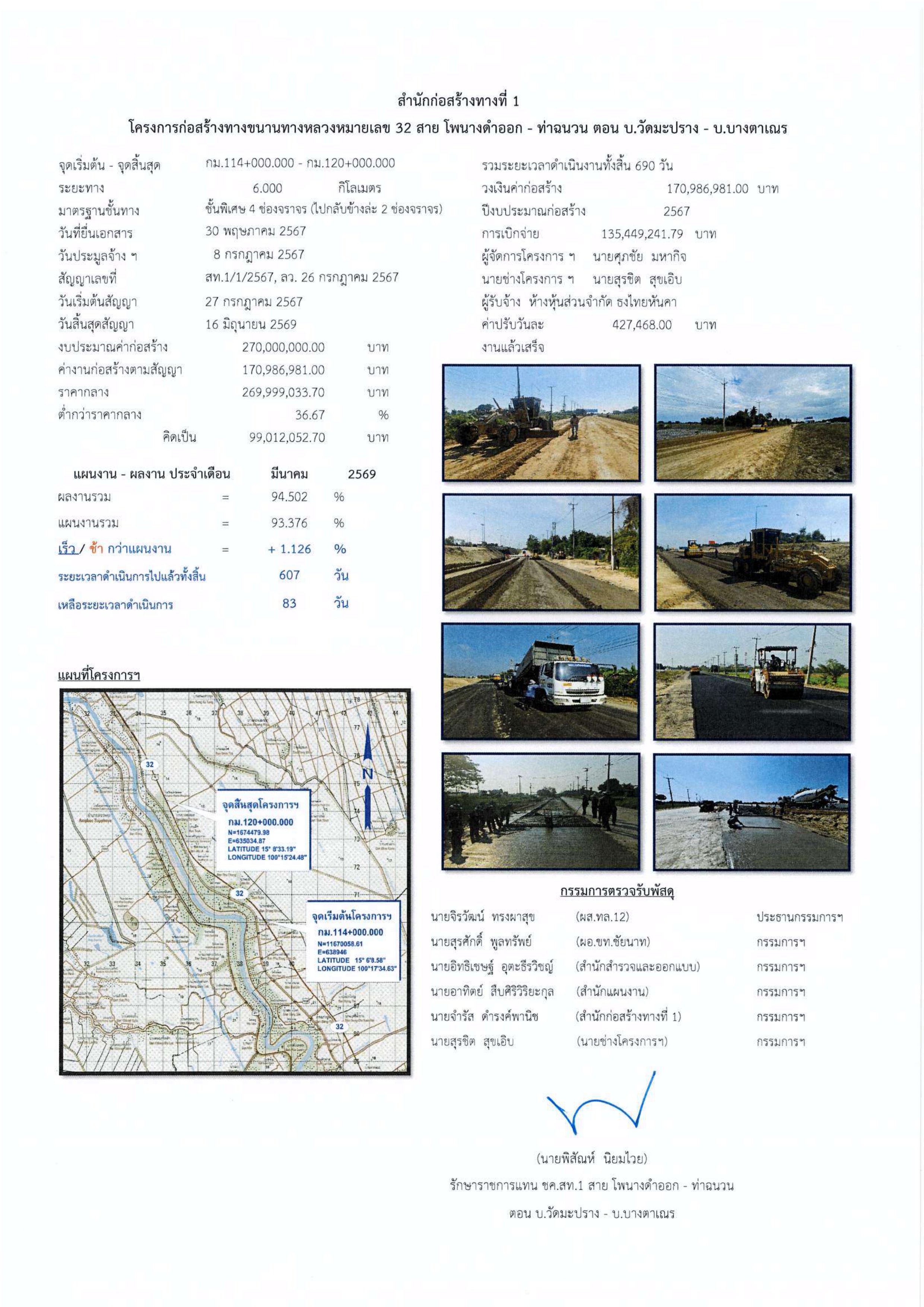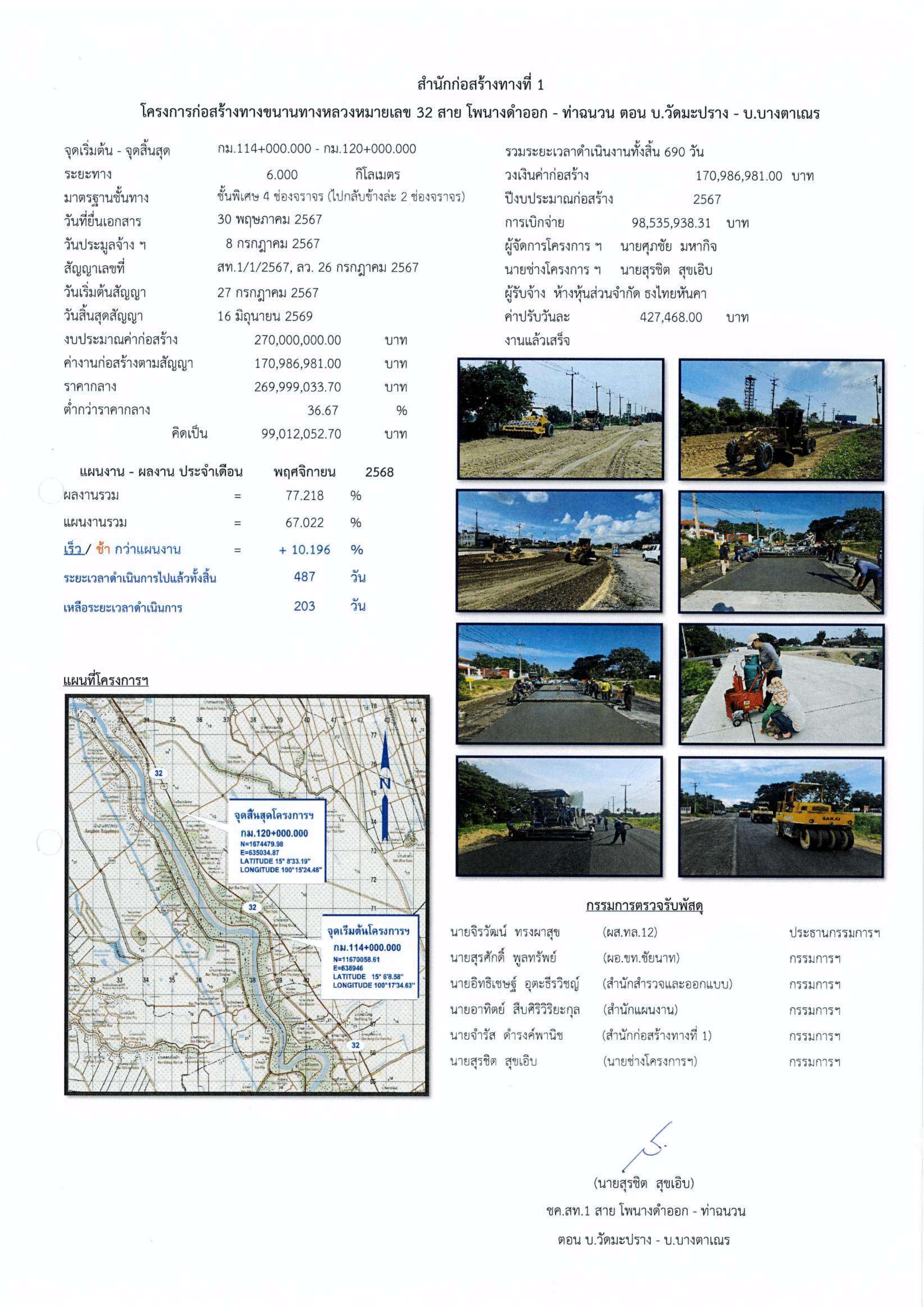 โครงการก่อสร้างทางขนานทางหลวงหมายเลข 32 สาย โพนางดำออก - ท่าฉนวน ตอน บ.วัดมะปราง - บ.บางตาเณร