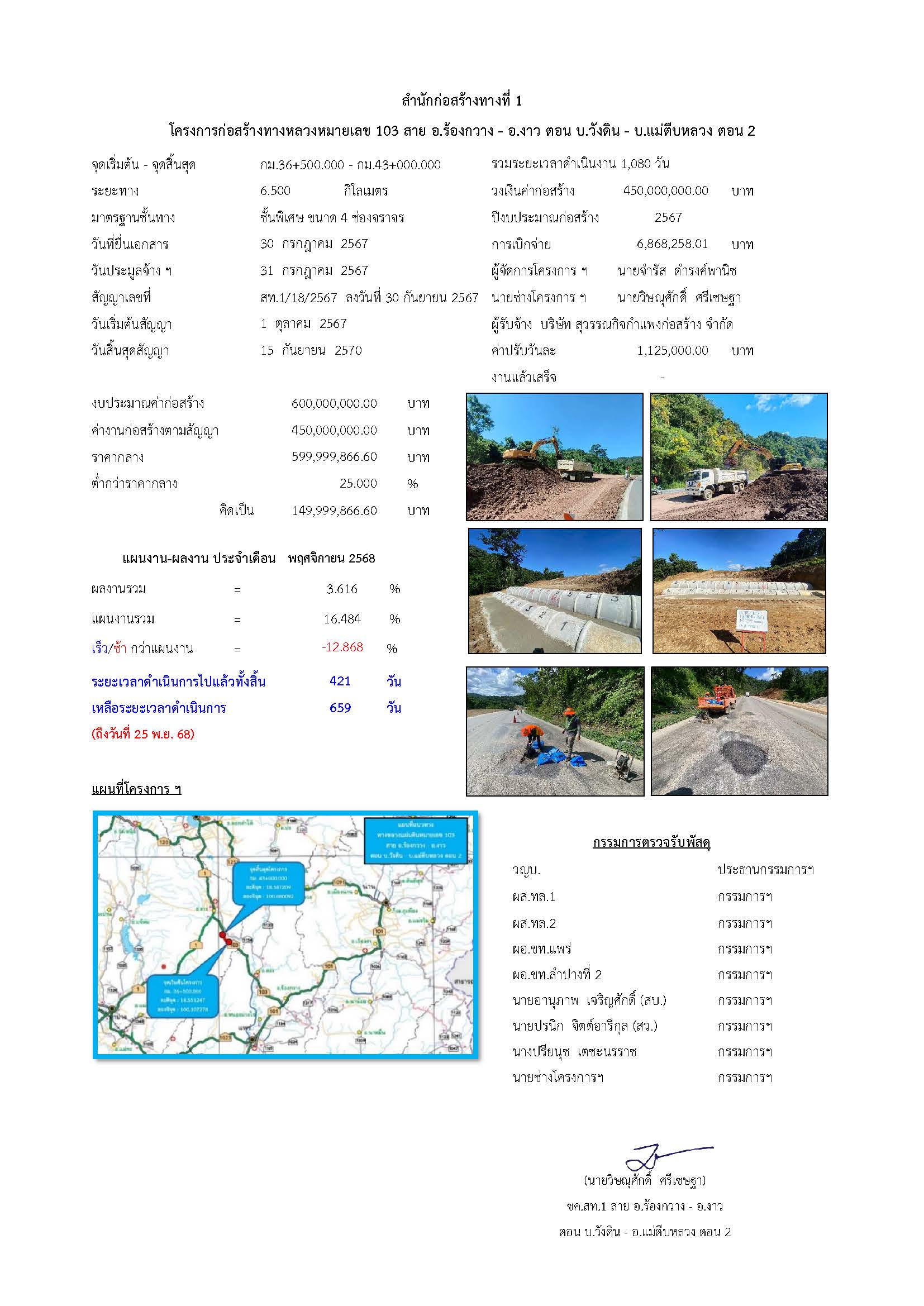 โครงการก่อสร้างทางหลวงหมายเลข 103 สาย อ.ร้องกวาง - อ.งาว ตอน บ.วังดิน - บ.แม่ตีบหลวง ตอน 2