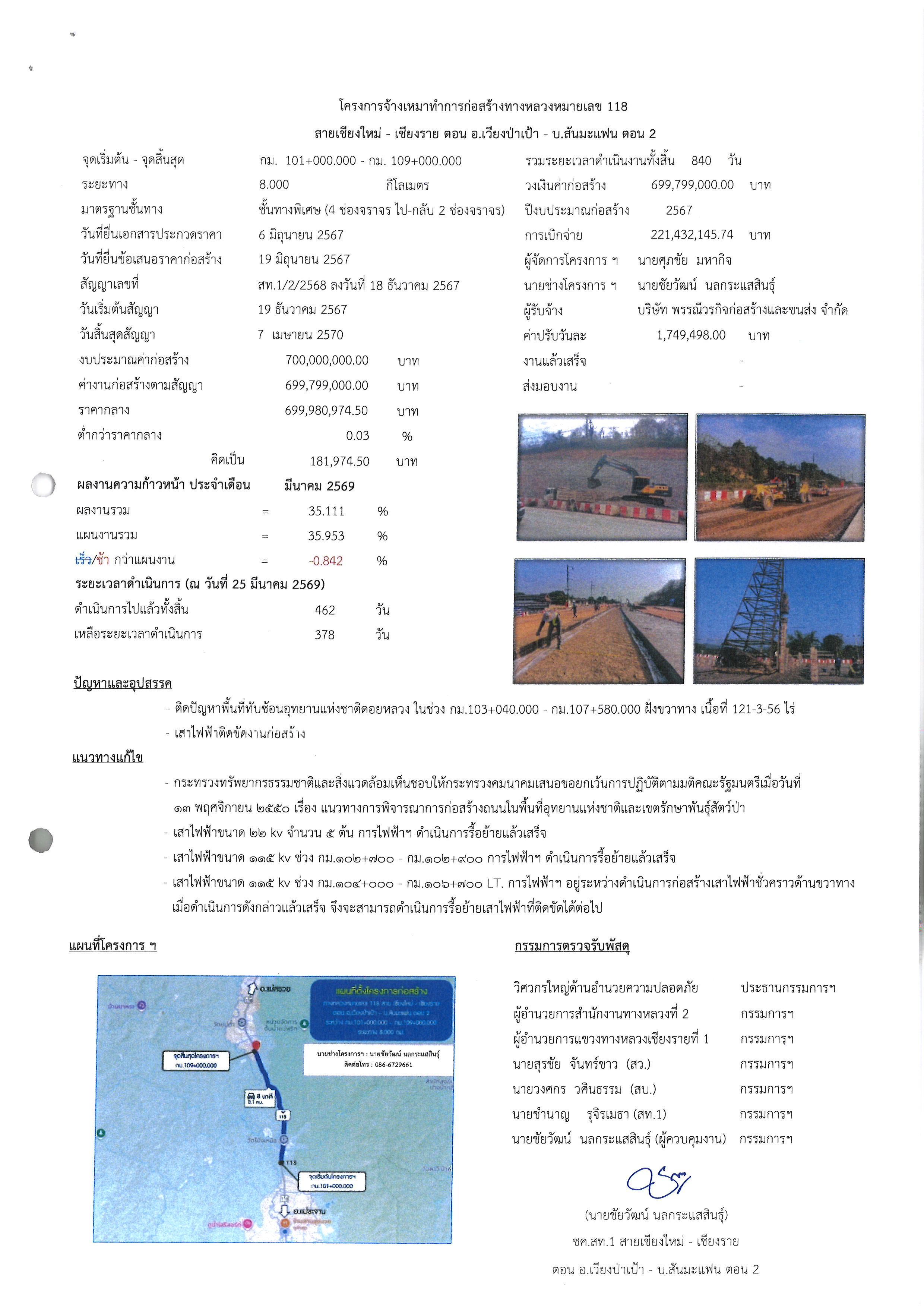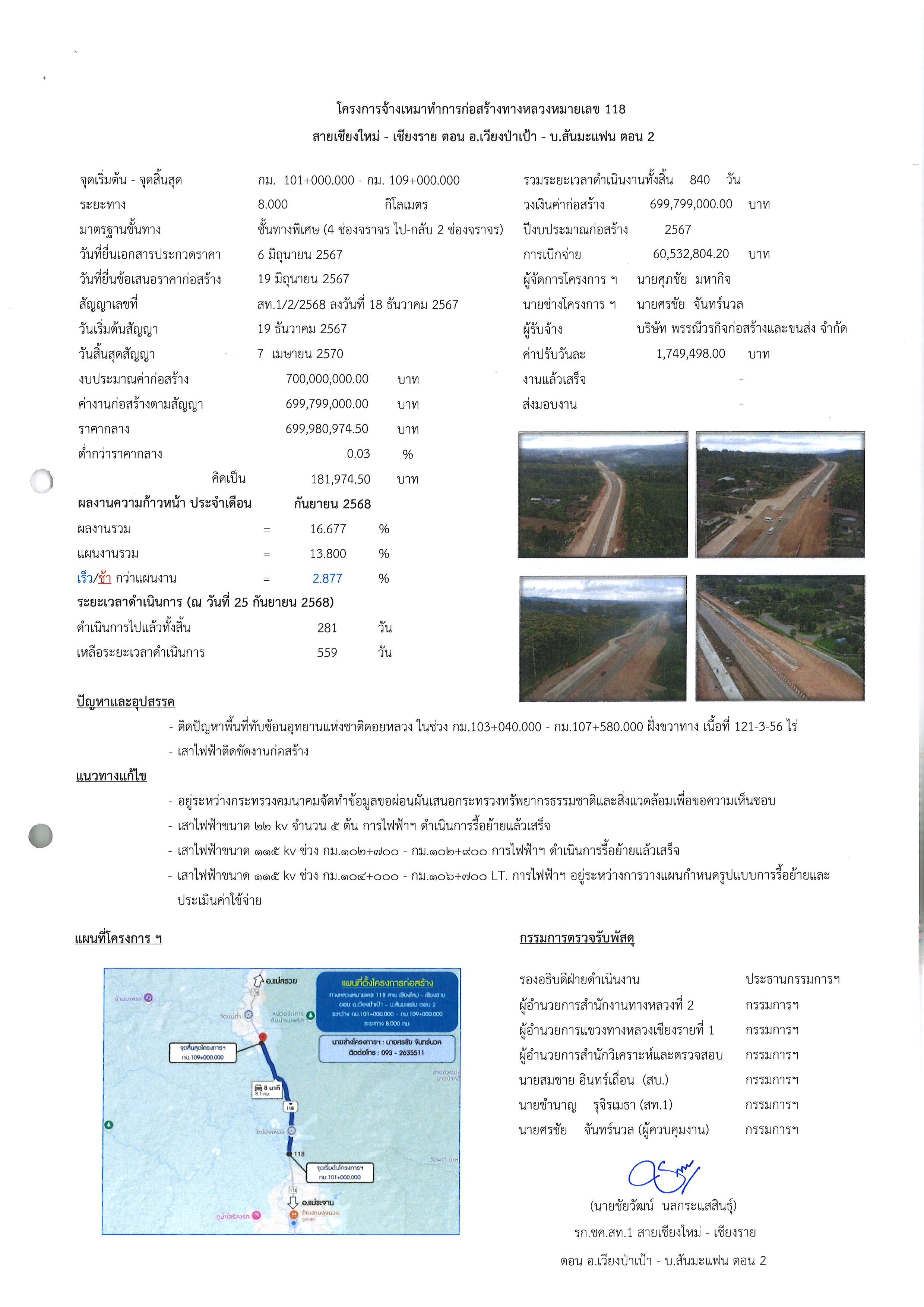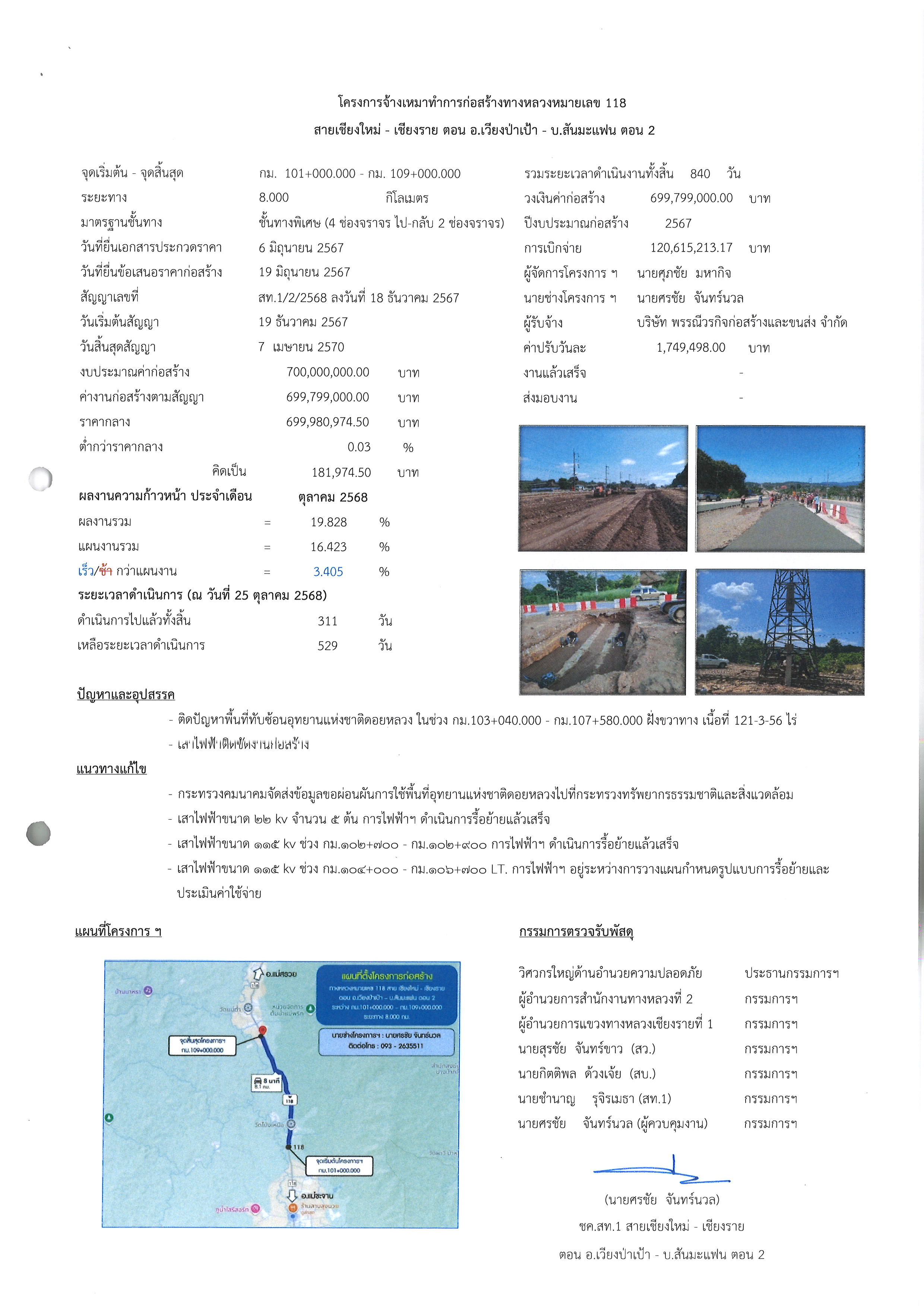 โครงการก่อสร้างทางหลวงหมายเลข 118 สาย เชียงใหม่ - เชียงราย ตอน อ.เวียงป่าเป้า - บ.สันมะแฟน ตอน 2