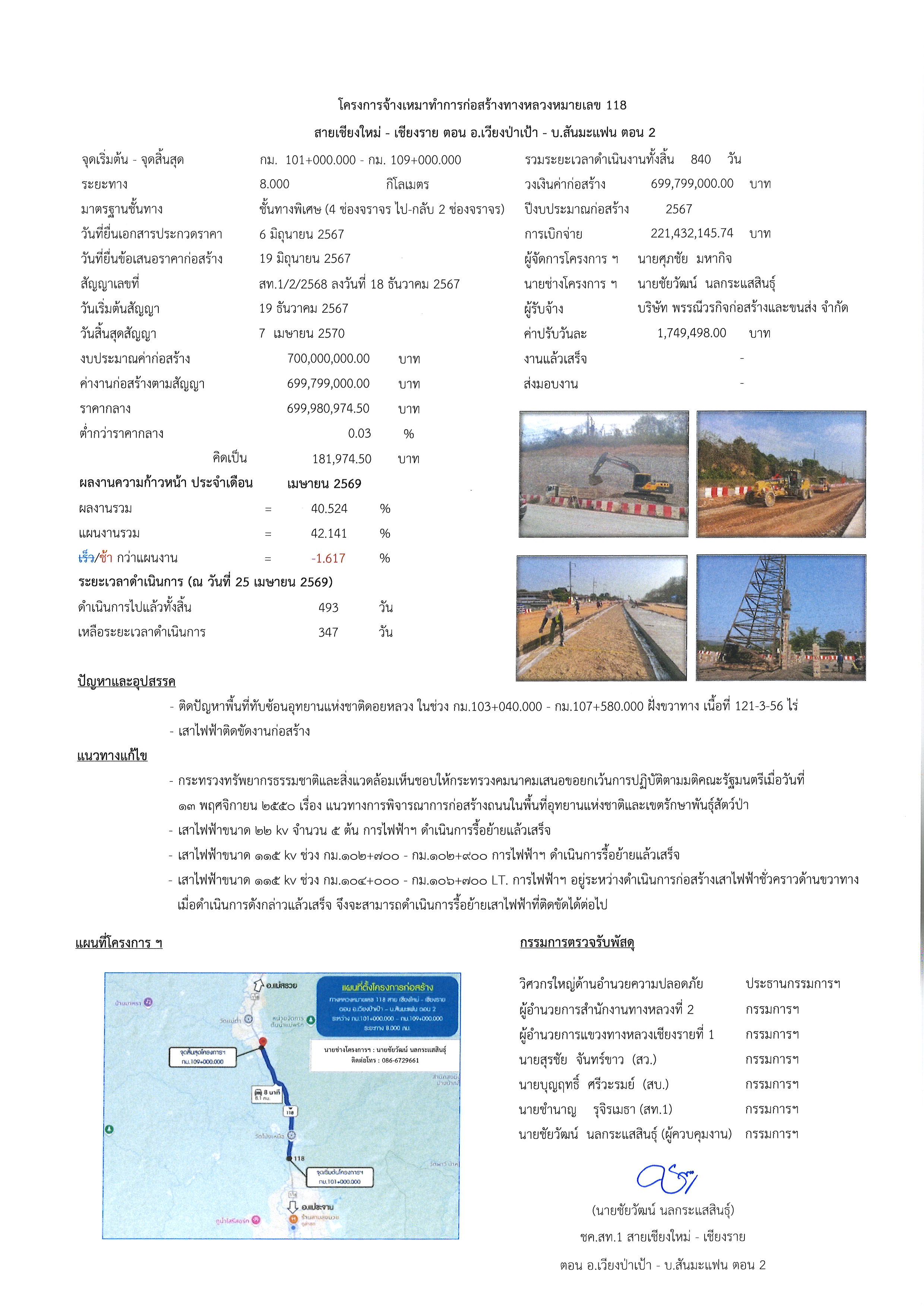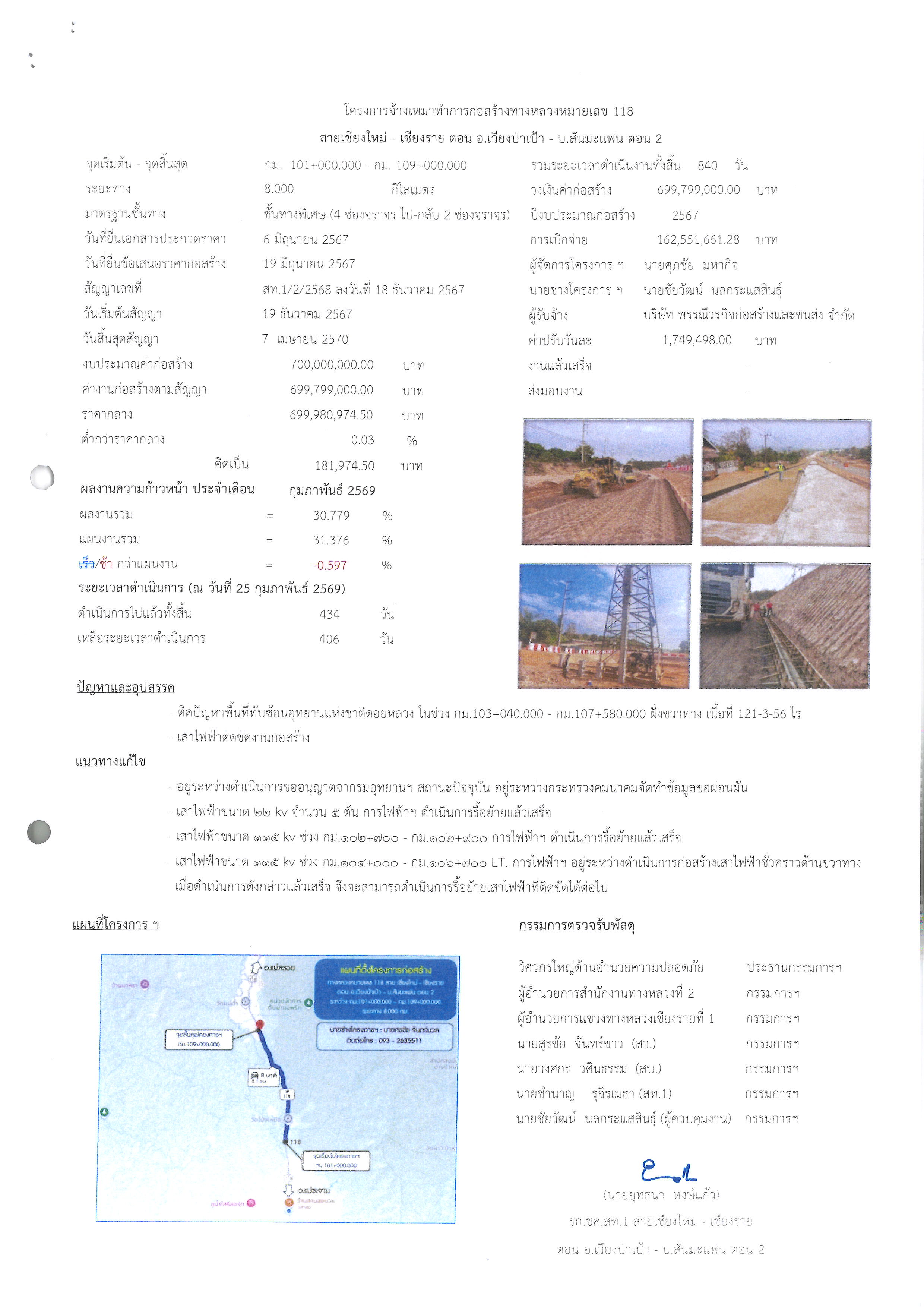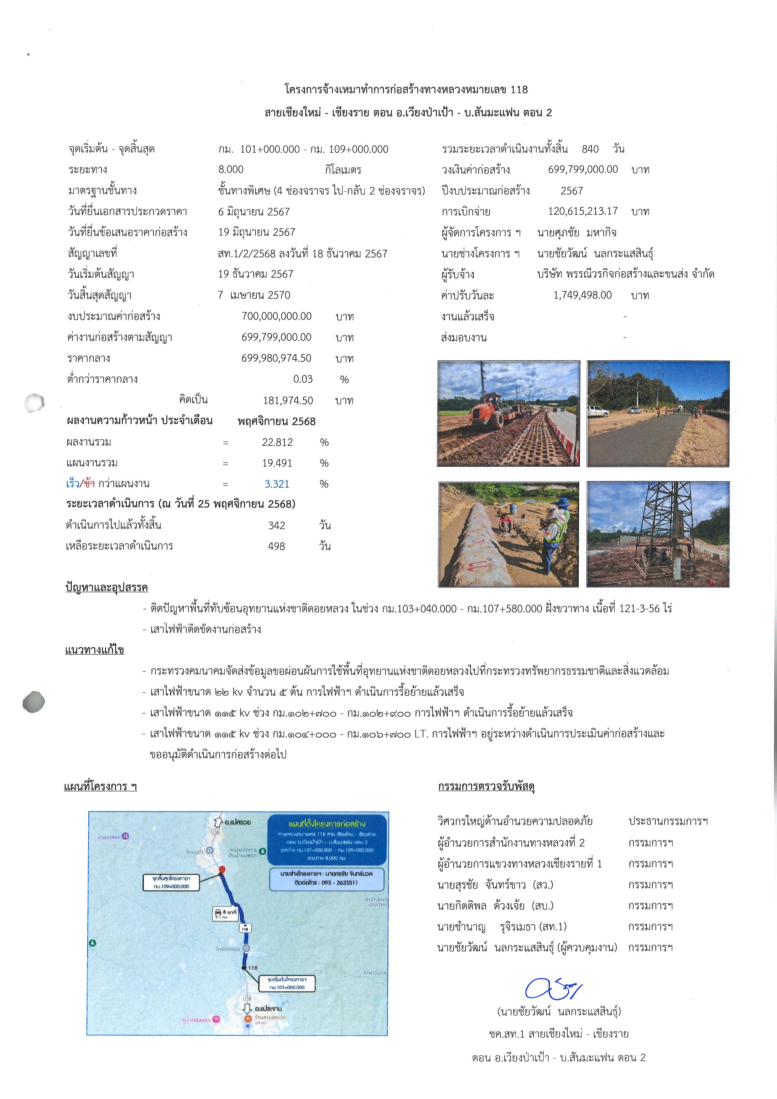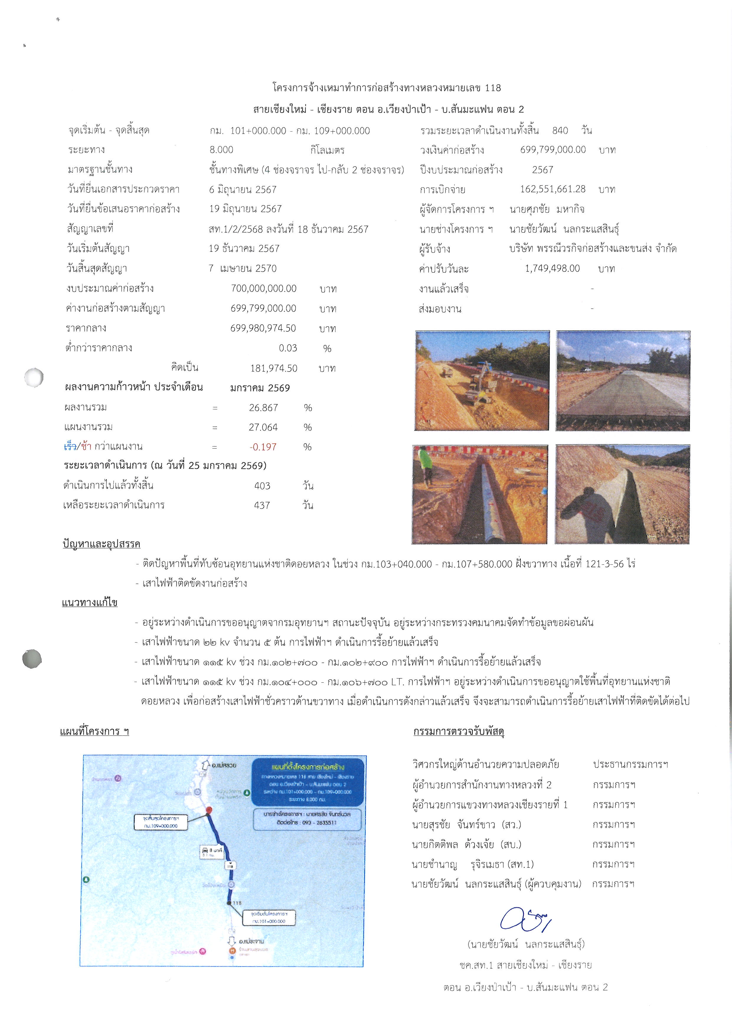 โครงการก่อสร้างทางหลวงหมายเลข 118 สาย เชียงใหม่ - เชียงราย ตอน อ.เวียงป่าเป้า - บ.สันมะแฟน ตอน 2