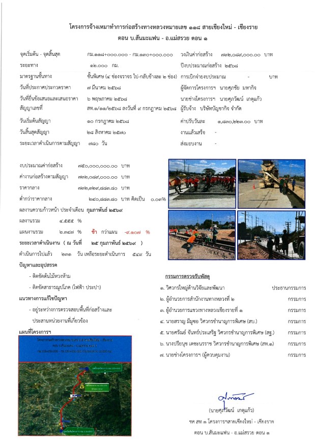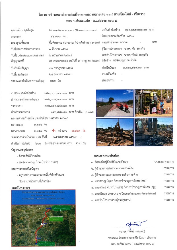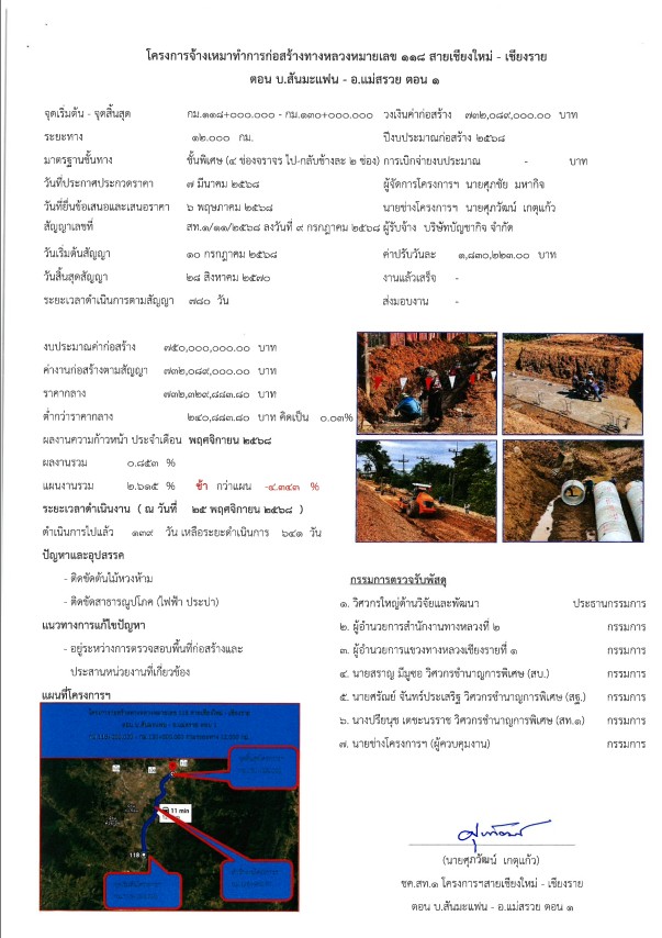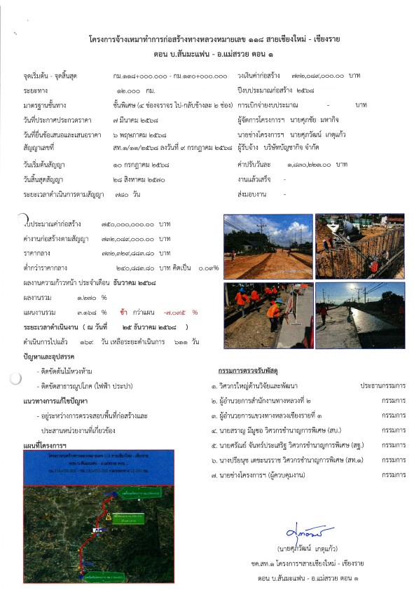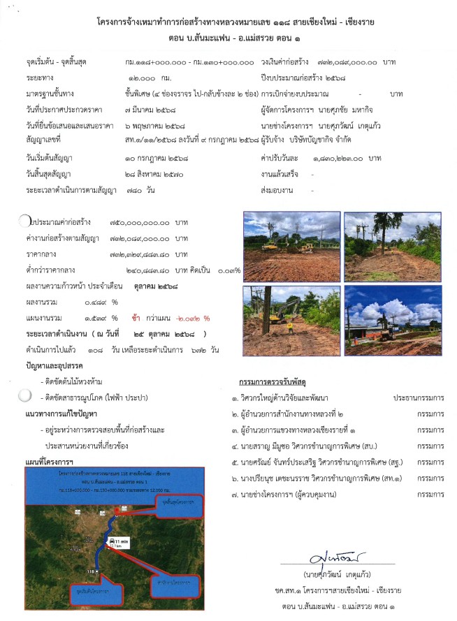 โครงการก่อสร้างทางหลวงหมายเลข 118 สายเชียงใหม่ - เชียงราย ตอน บ.สันมะแฟน - อ.แม่สรวย ตอน 1