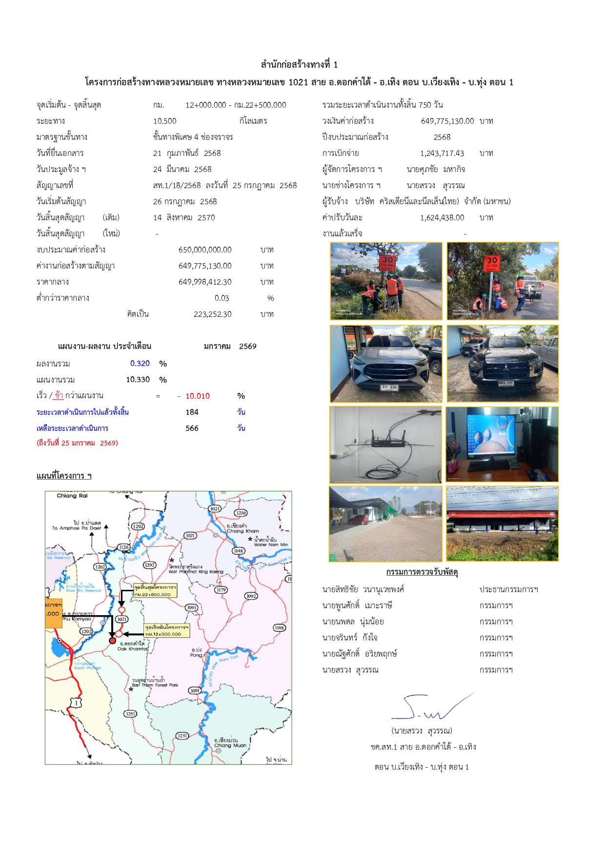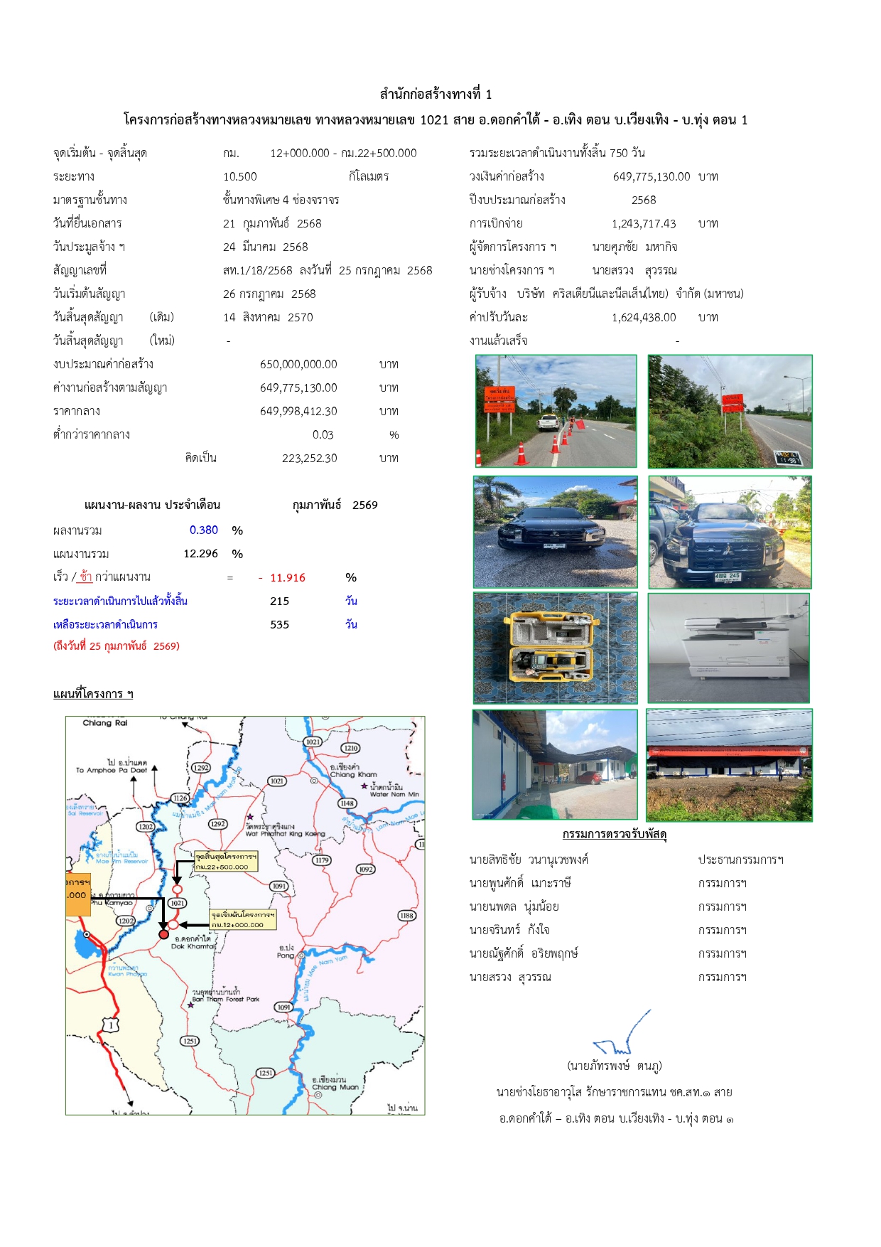 โครงการก่อสร้างทางหลวงหมายเลข ทางหลวงหมายเลข 1021 สาย อ.ดอกคำใต้ - อ.เทิง ตอน บ.เวียงเทิง - บ.ทุ่ง ตอน 1