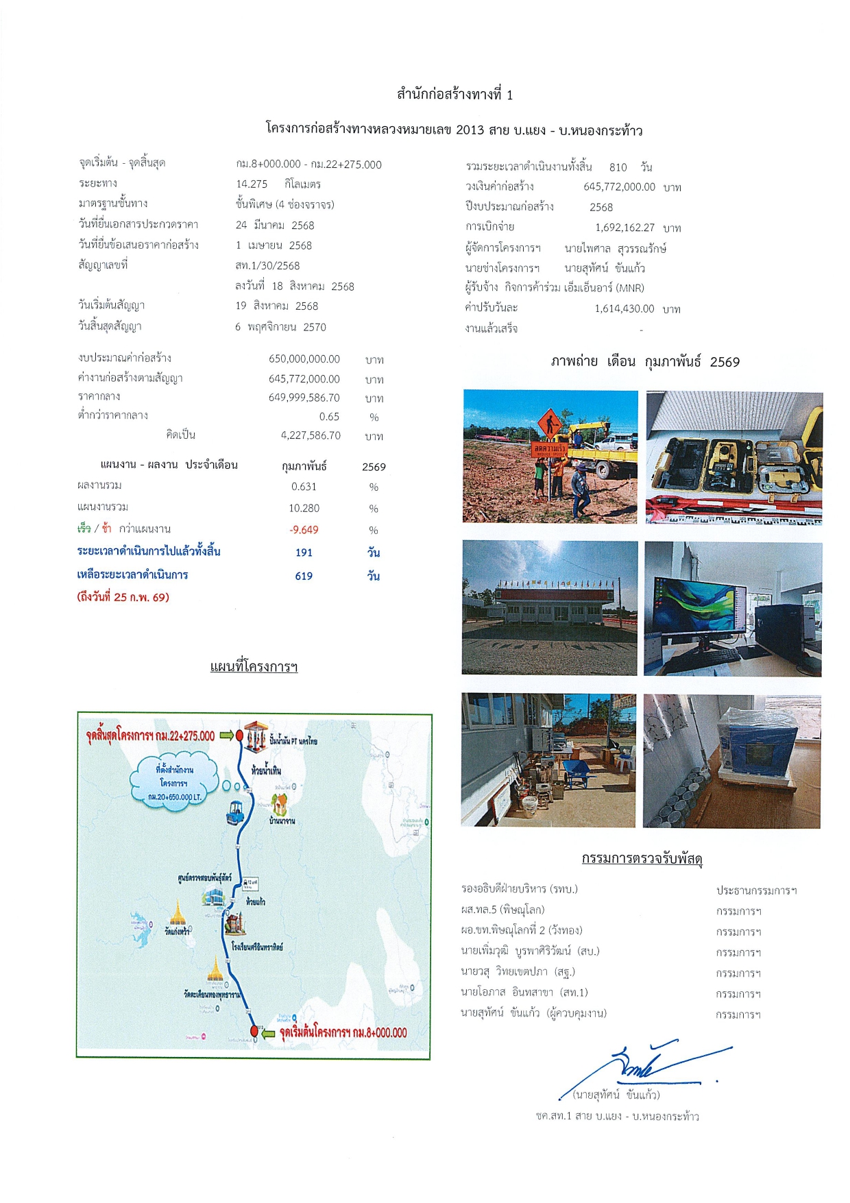 โครงการก่อสร้างทางหลวงหมายเลข 2013 สาย บ.แยง - บ.หนองกระท้าว