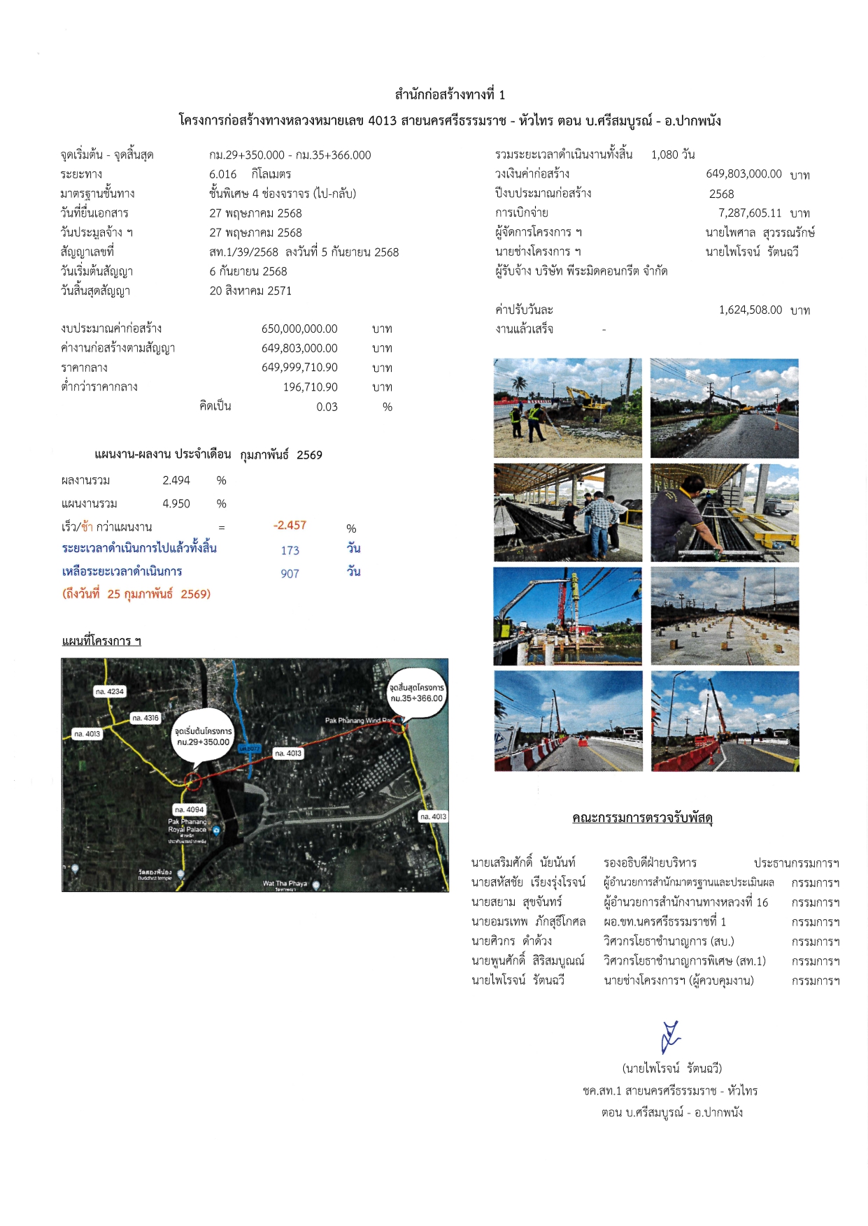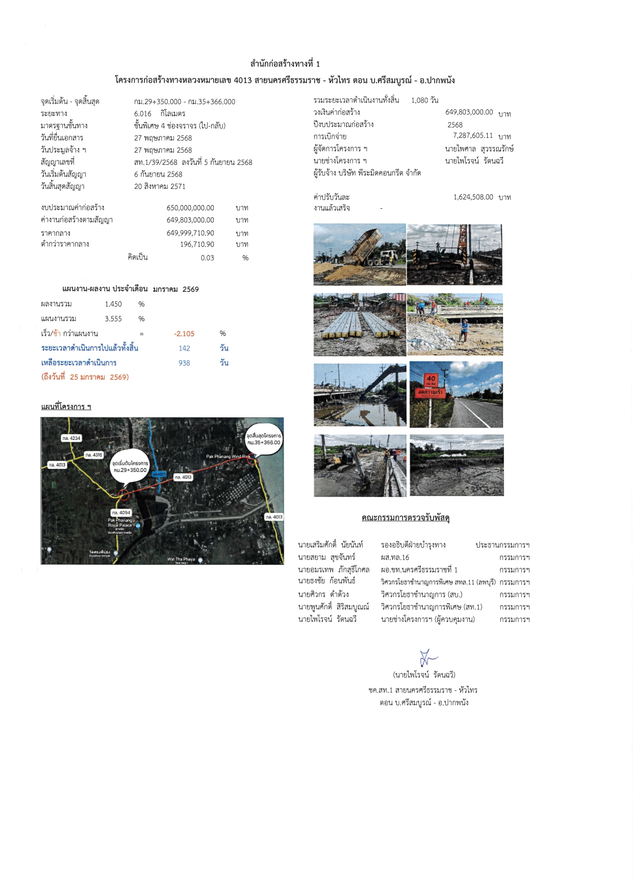 โครงการก่อสร้างทางหลวงหมายเลข 4013 สายนครศรีธรรมราช - หัวไทร ตอน บ.ศรีสมบูรณ์ - อ.ปากพนัง