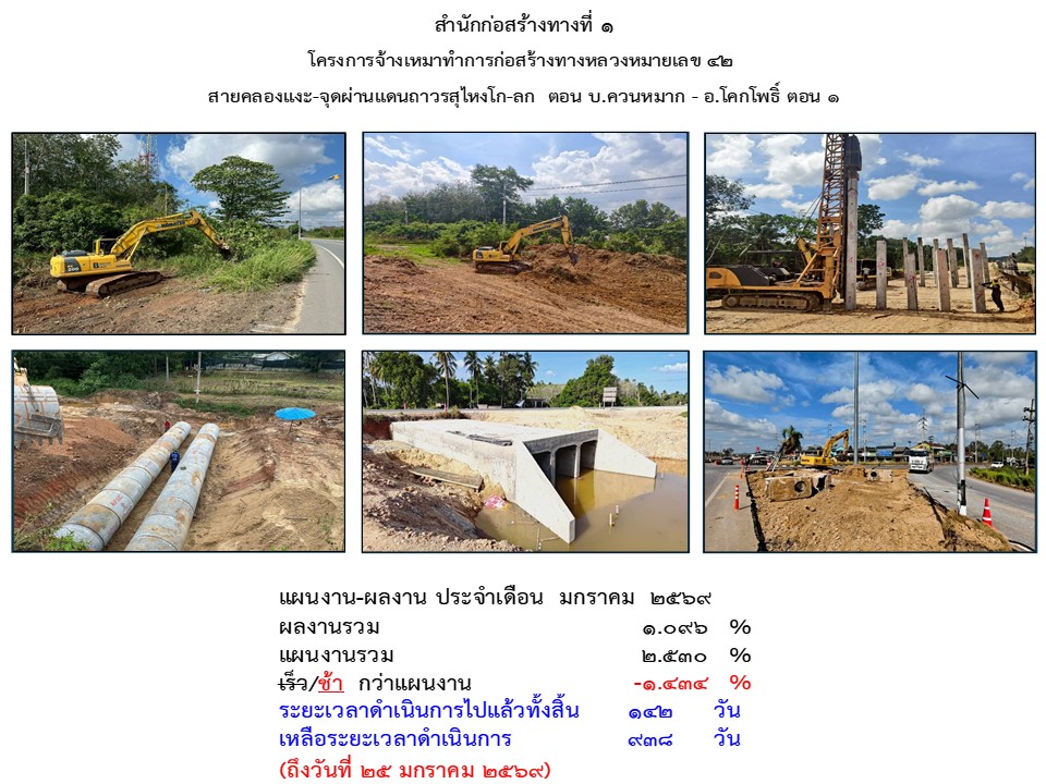 โครงการจ้างเหมาทำการก่อสร้างทางหลวงหมายเลข 42 สายคลองแงะ-จุดผ่านแดนถาวรสุไหงโก-ลก ตอน บ.ควนหมาก - อ.โคกโพธิ์ ตอน 1