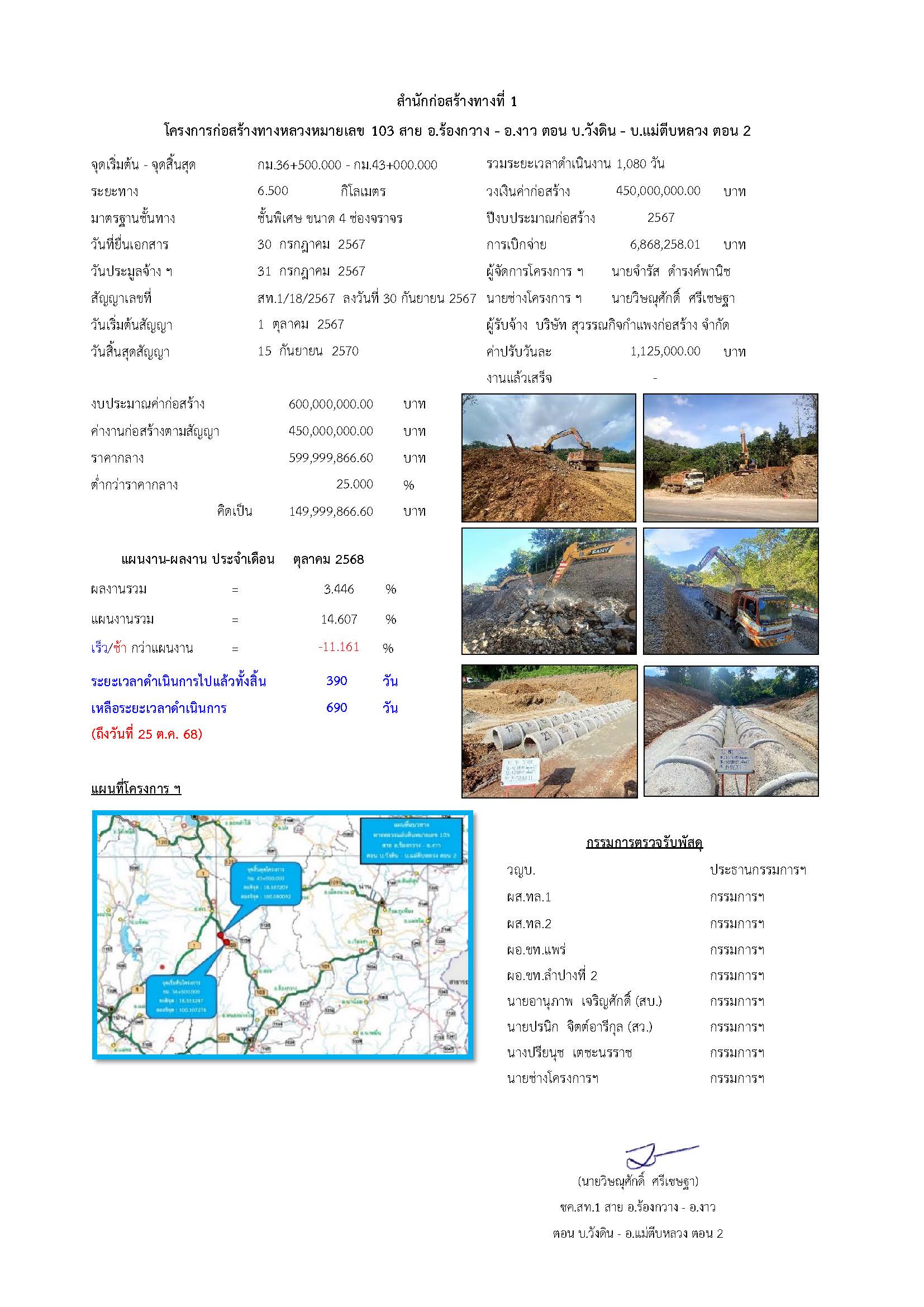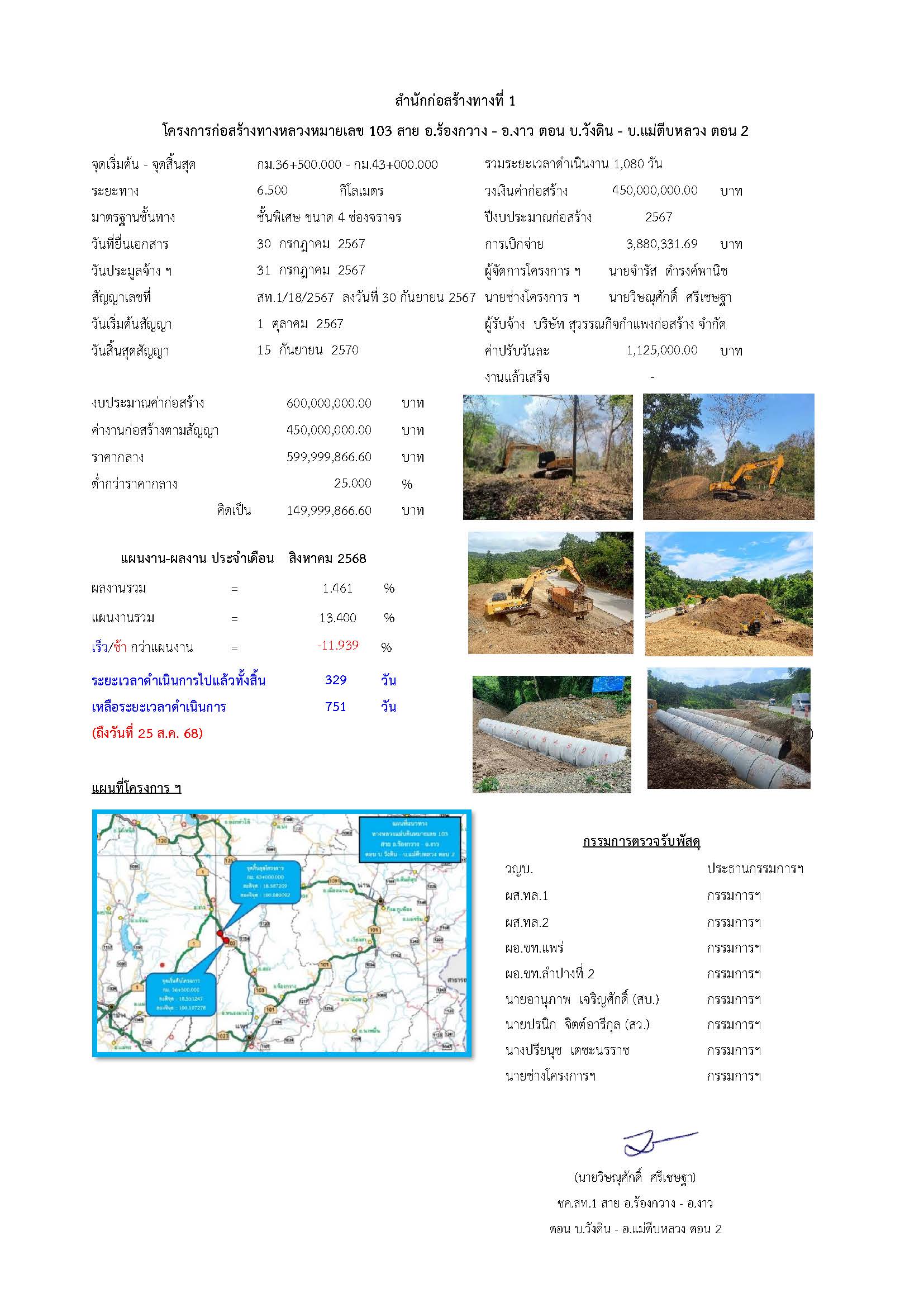 โครงการก่อสร้างทางหลวงหมายเลข 103 สาย อ.ร้องกวาง - อ.งาว ตอน บ.วังดิน - บ.แม่ตีบหลวง ตอน 2