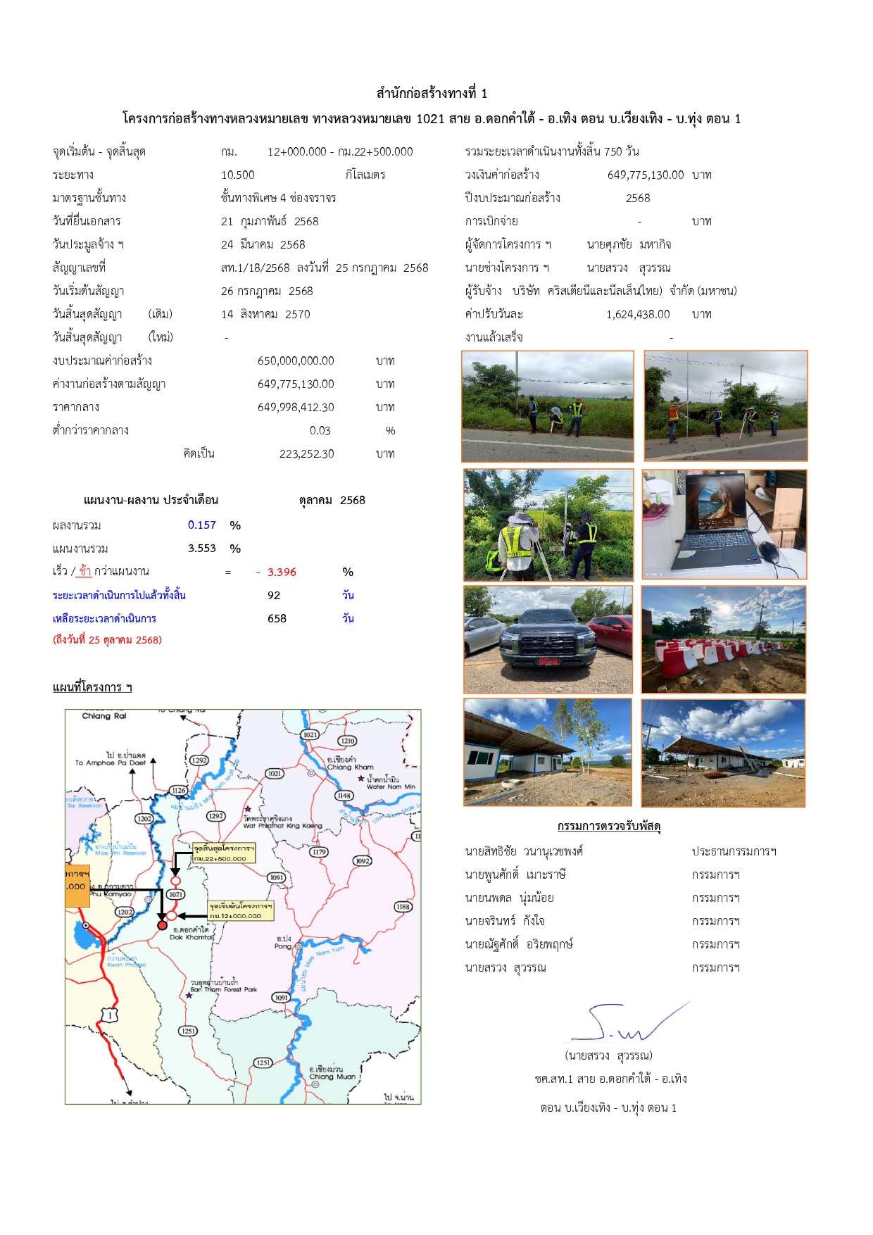โครงการก่อสร้างทางหลวงหมายเลข ทางหลวงหมายเลข 1021 สาย อ.ดอกคำใต้ - อ.เทิง ตอน บ.เวียงเทิง - บ.ทุ่ง ตอน 1