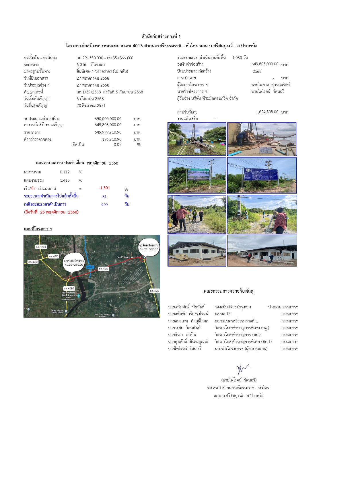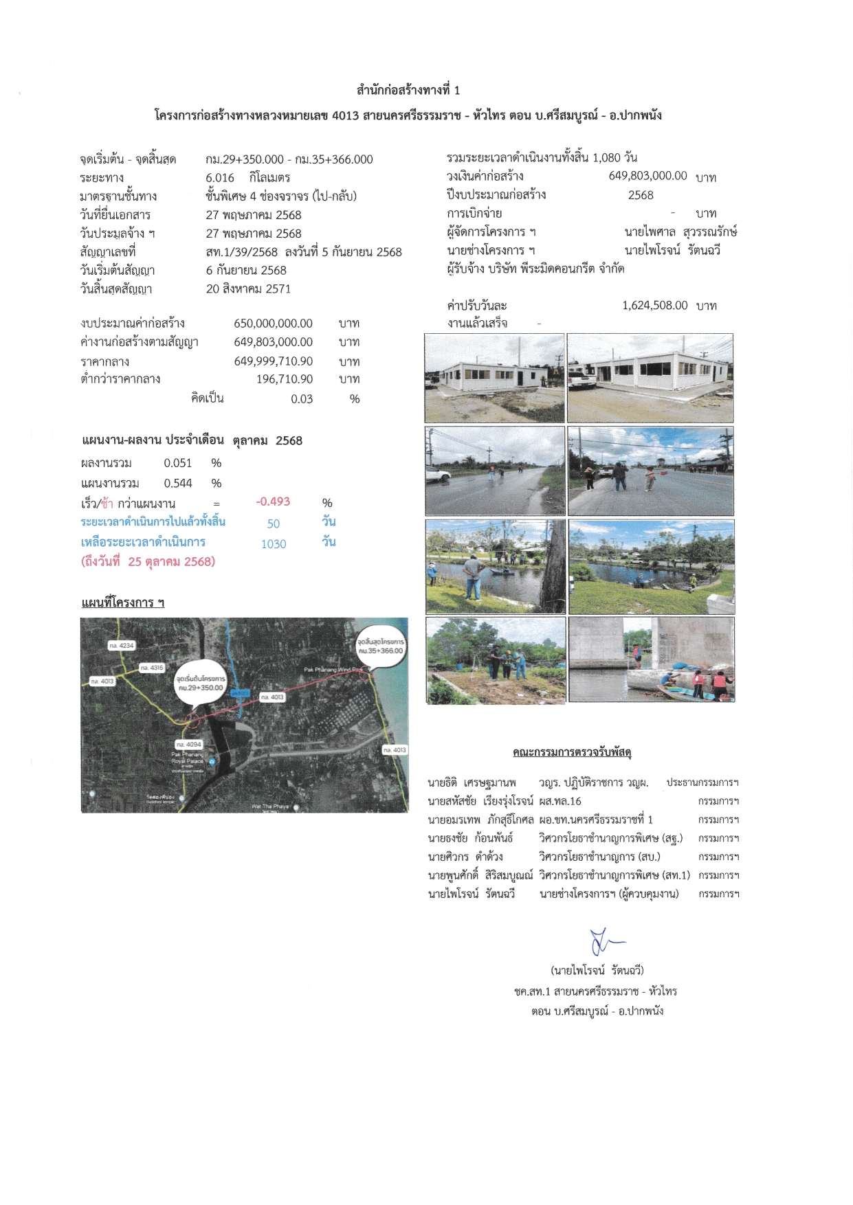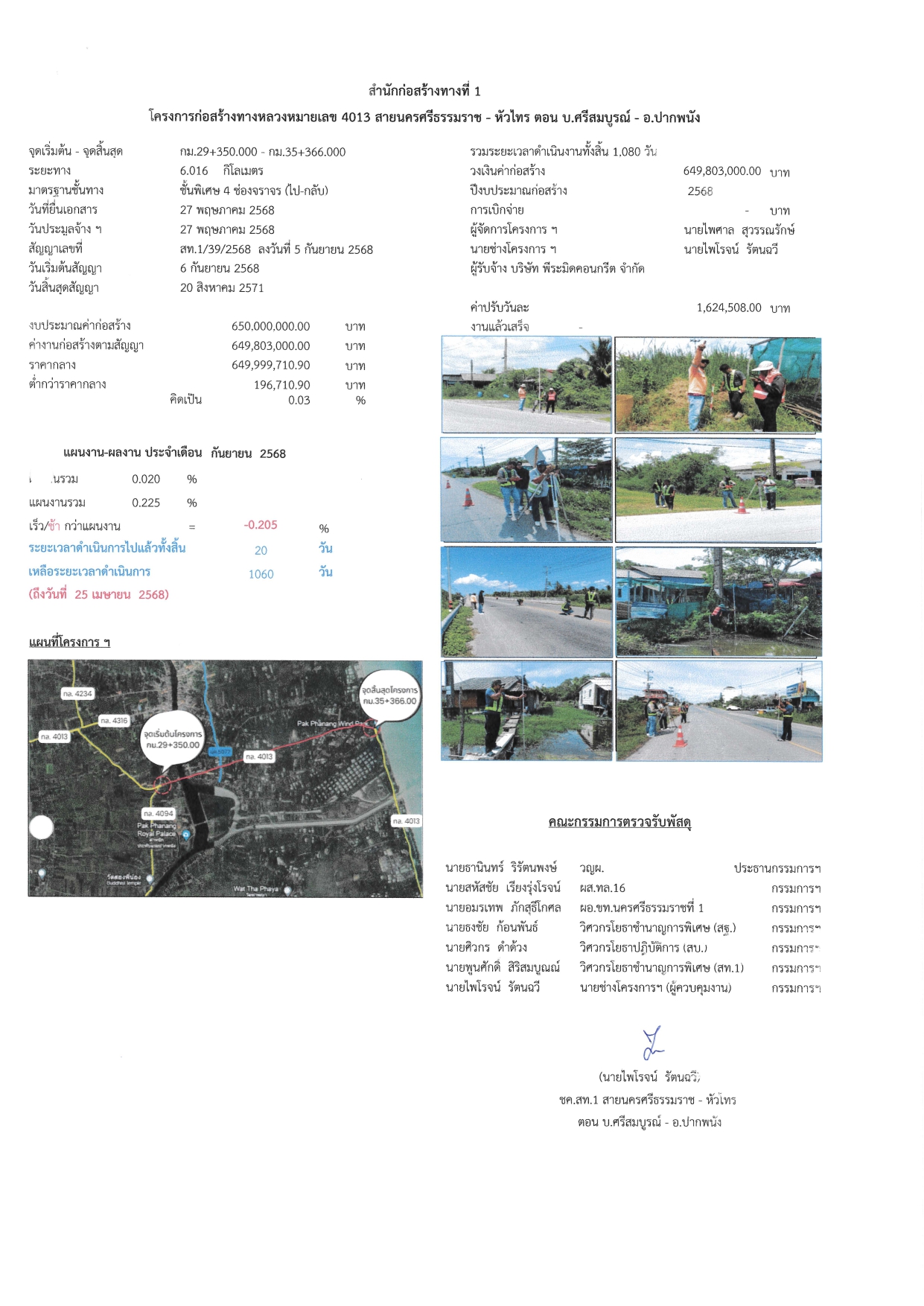 โครงการก่อสร้างทางหลวงหมายเลข 4013 สายนครศรีธรรมราช - หัวไทร ตอน บ.ศรีสมบูรณ์ - อ.ปากพนัง