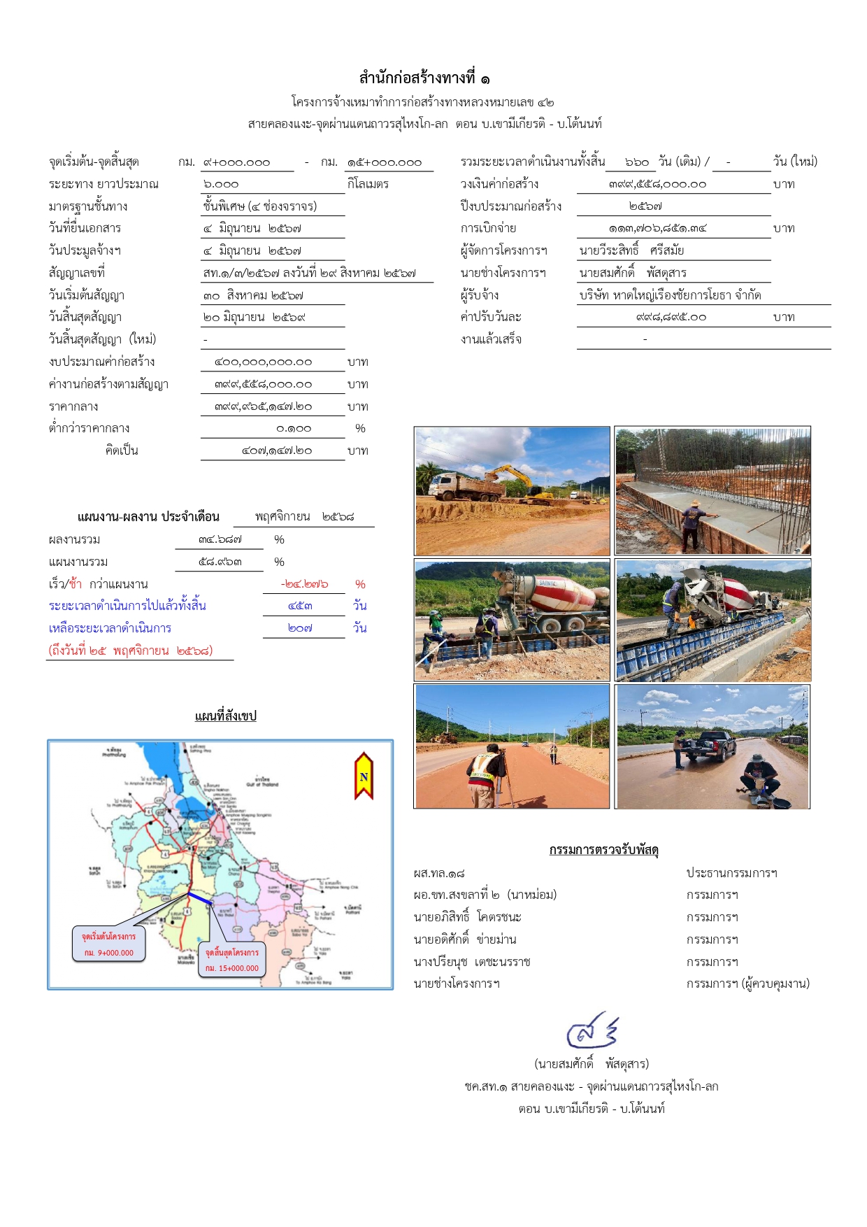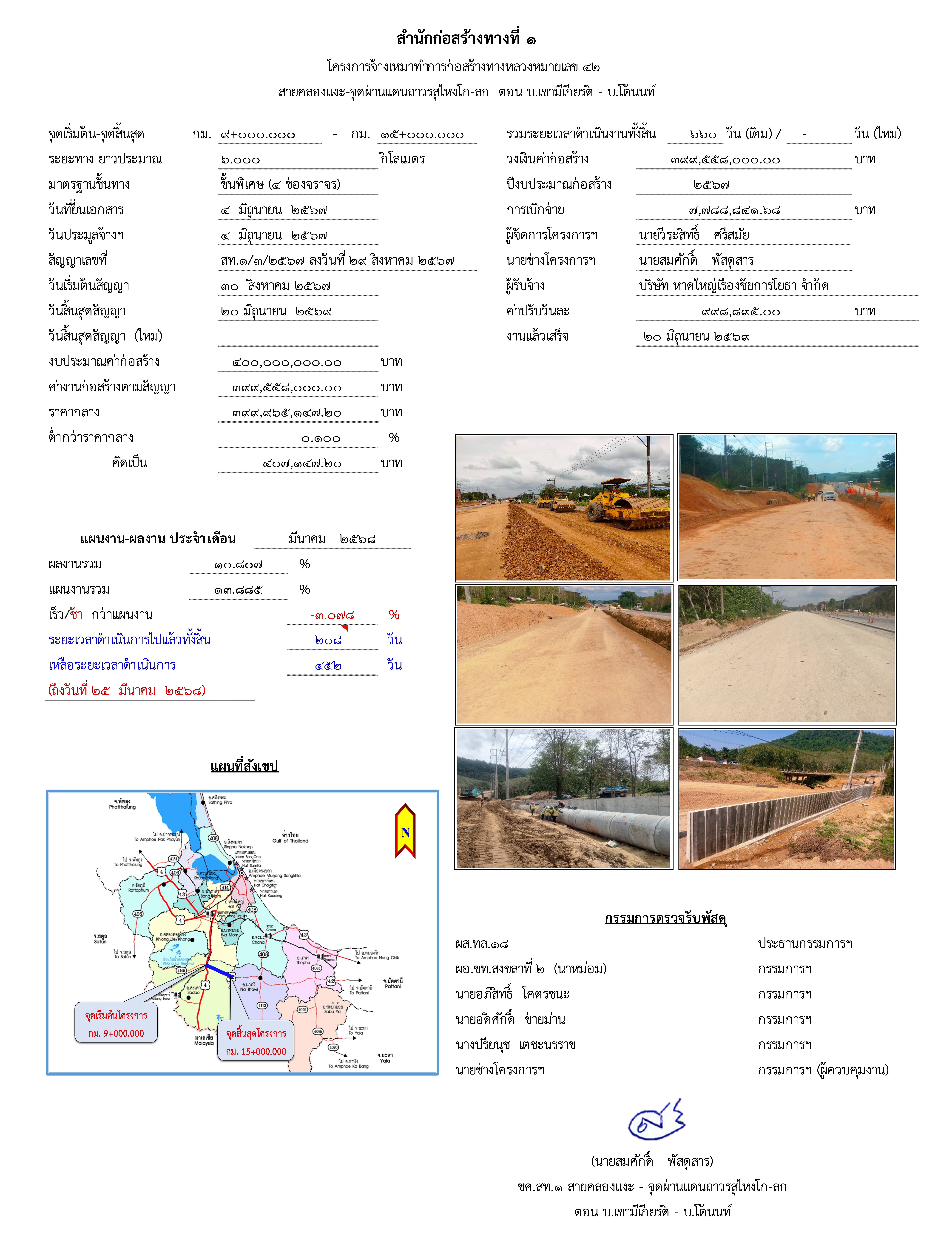 โครงการจ้างเหมาทำการก่อสร้างทางหลวงหมายเลข 42สายคลองแงะ - จุดผ่านแดนถาวรสุไหงโก-ลกตอน บ.เขามีเกียรติ - บ.โต้นนท์