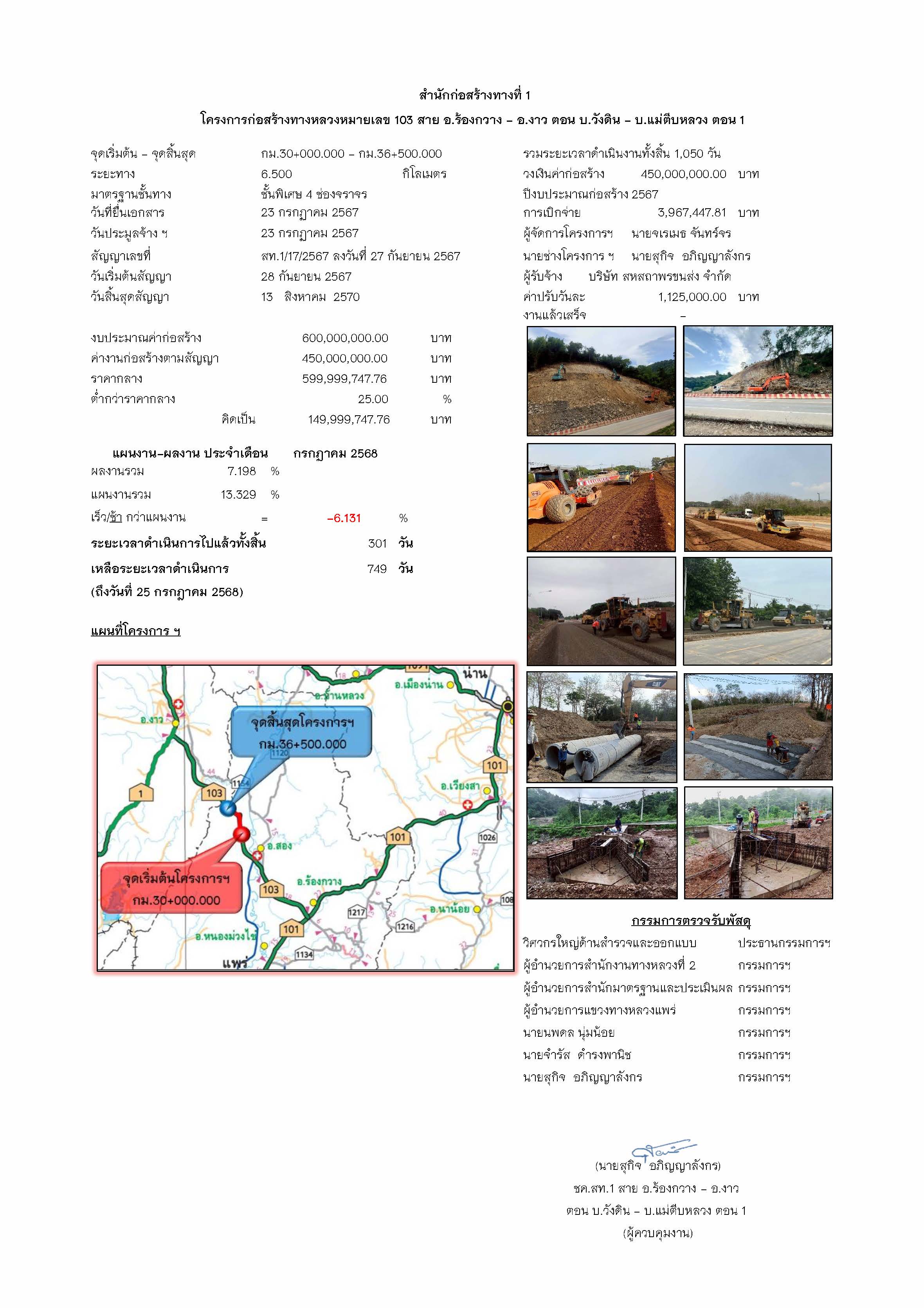 โครงการก่อสร้างทางหลวงหมายเลข 103 สาย อ.ร้องกวาง - อ.งาว ตอน บ.วังดิน - บ.แม่ตีบหลวง ตอน 1
