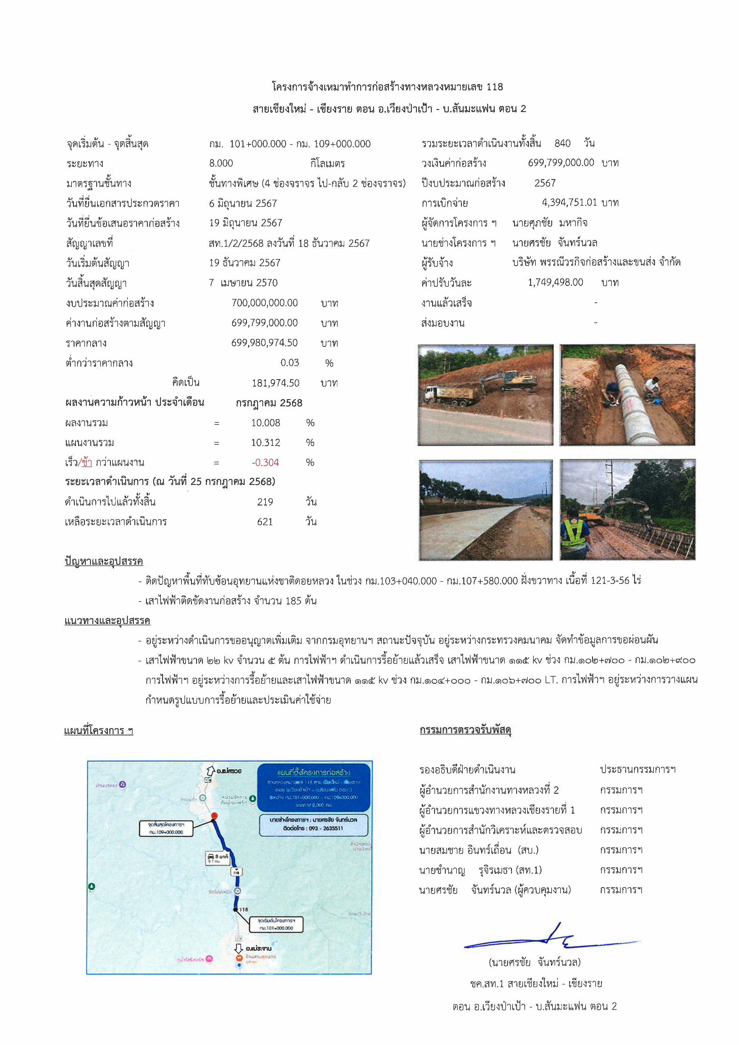 โครงการก่อสร้างทางหลวงหมายเลข 118 สาย เชียงใหม่ - เชียงราย ตอน อ.เวียงป่าเป้า - บ.สันมะแฟน ตอน 2