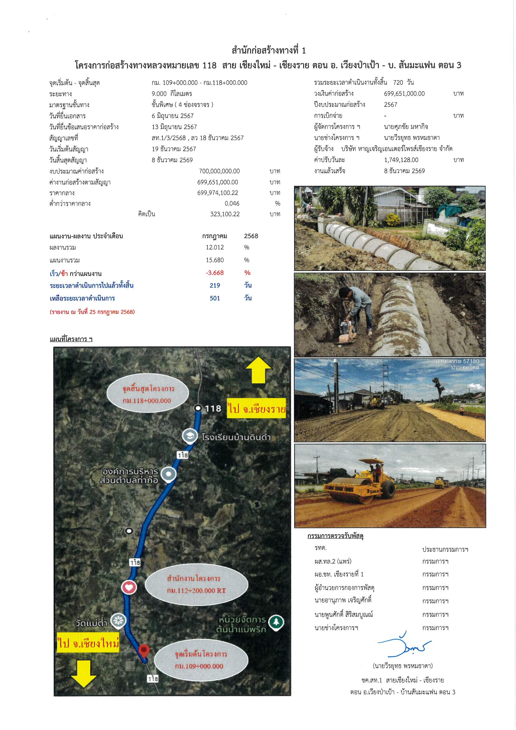โครงการก่อสร้างทางหลวงหมายเลข 118 สายเชียงใหม่ - เชียงราย ตอน อ.เวียงป่าเป้า - บ.สันมะแฟน ตอน 3