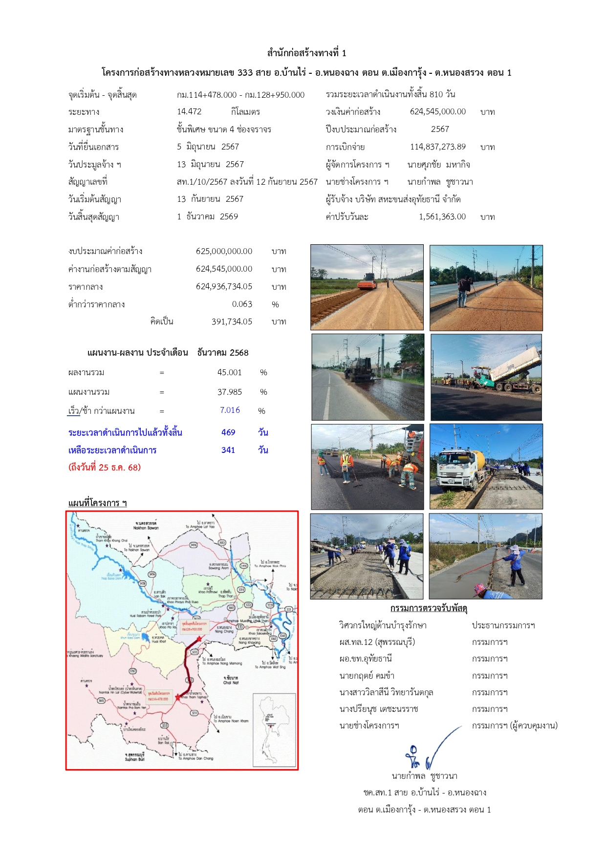 โครงการก่อสร้างทางหลวงหมายเลข 333 สาย อ.บ้านไร่ - อ.หนองฉาง ตอน ต.เมืองการุ้ง - ต.หนองสรวง ตอน 1