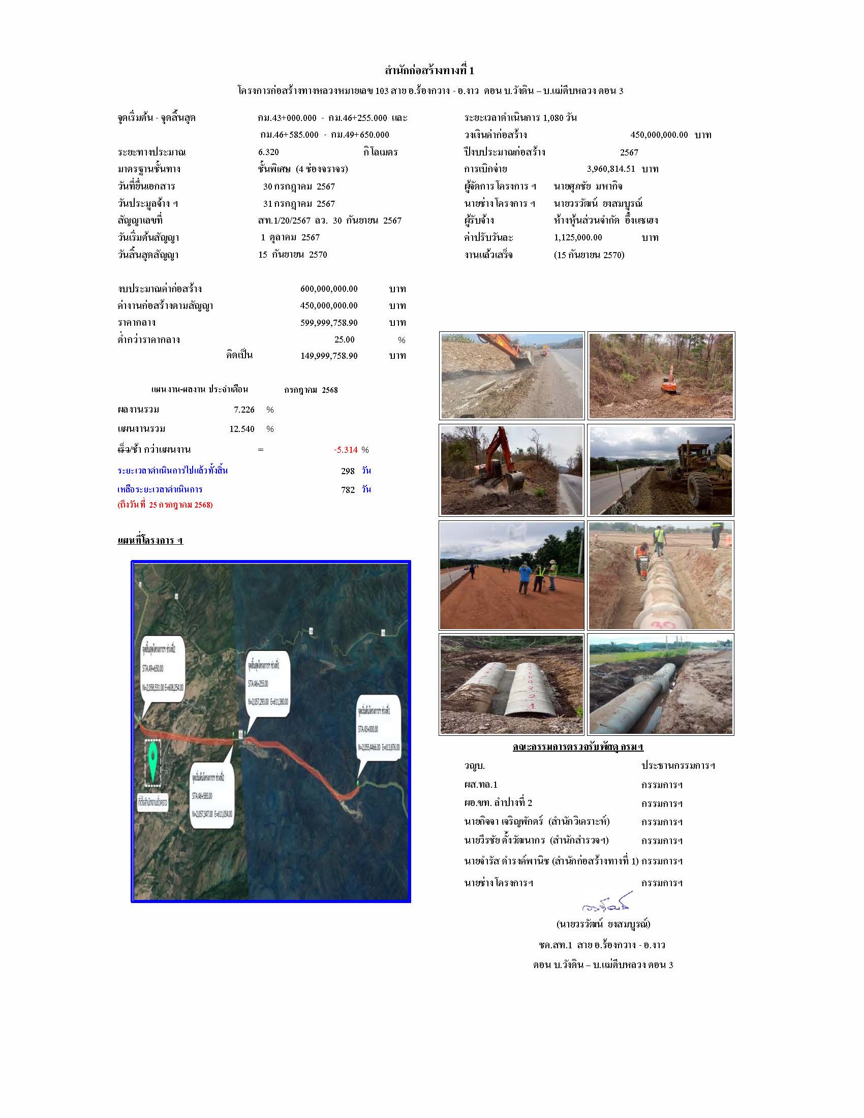 โครงการก่อสร้างทางหลวงหมายเลข 103 สาย อ.ร้องกวาง - อ.งาว ตอน บ.วังดิน - บ.แม่ตีบหลวง ตอน 3