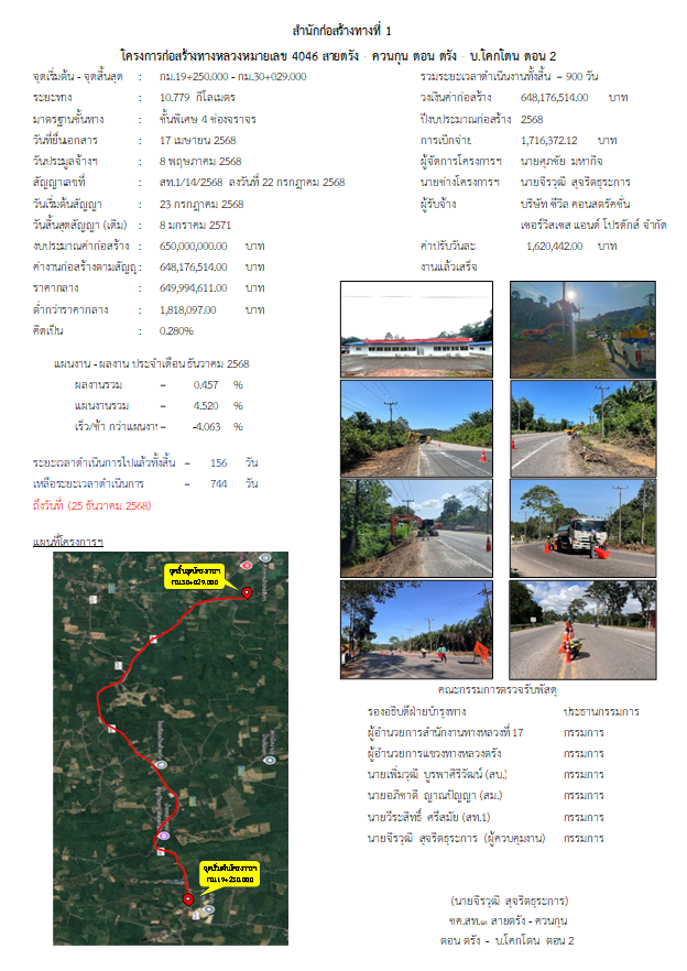 โครงการก่อสร้างทางหลวงหมายเลข 4046 สายตรัง - ควนกุน ตอน ตรัง - บ.โคกโตน ตอน 2