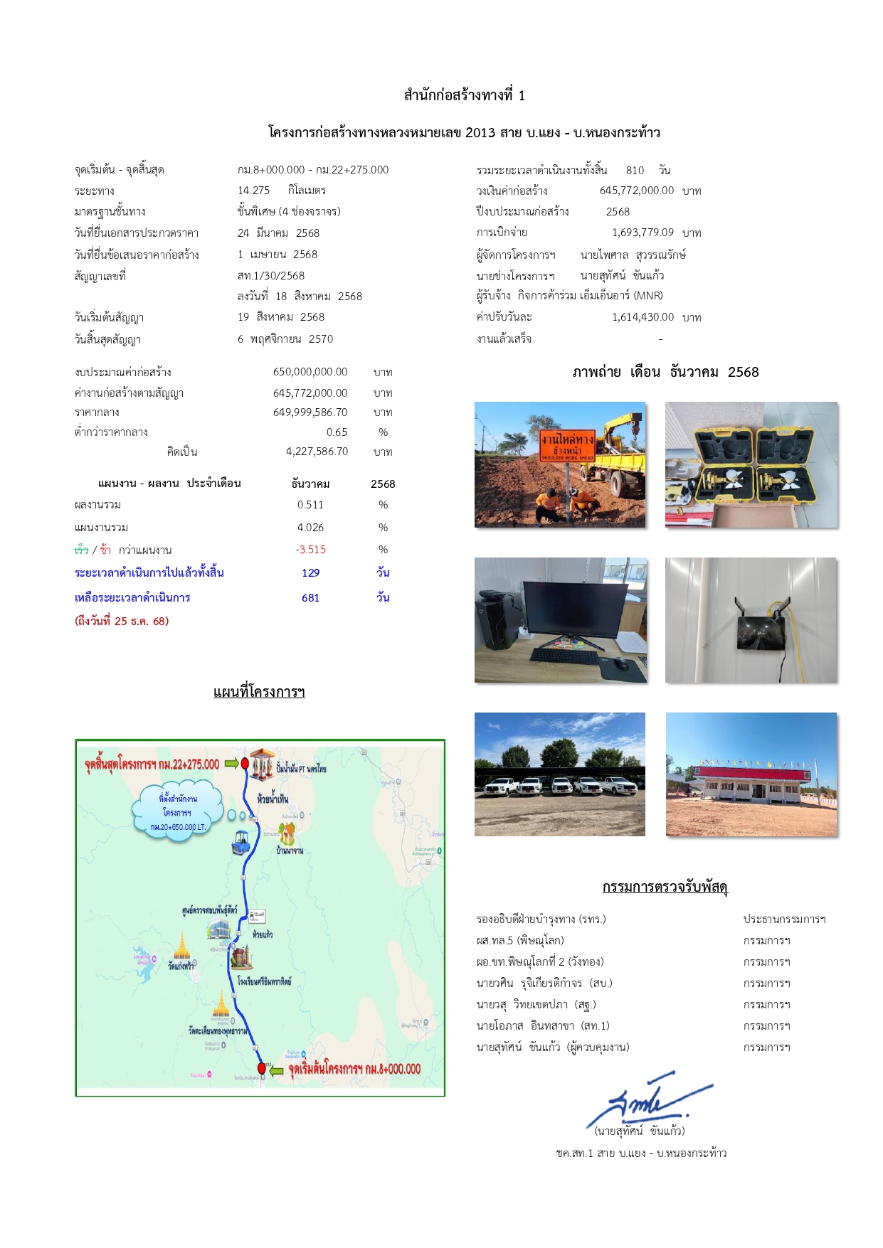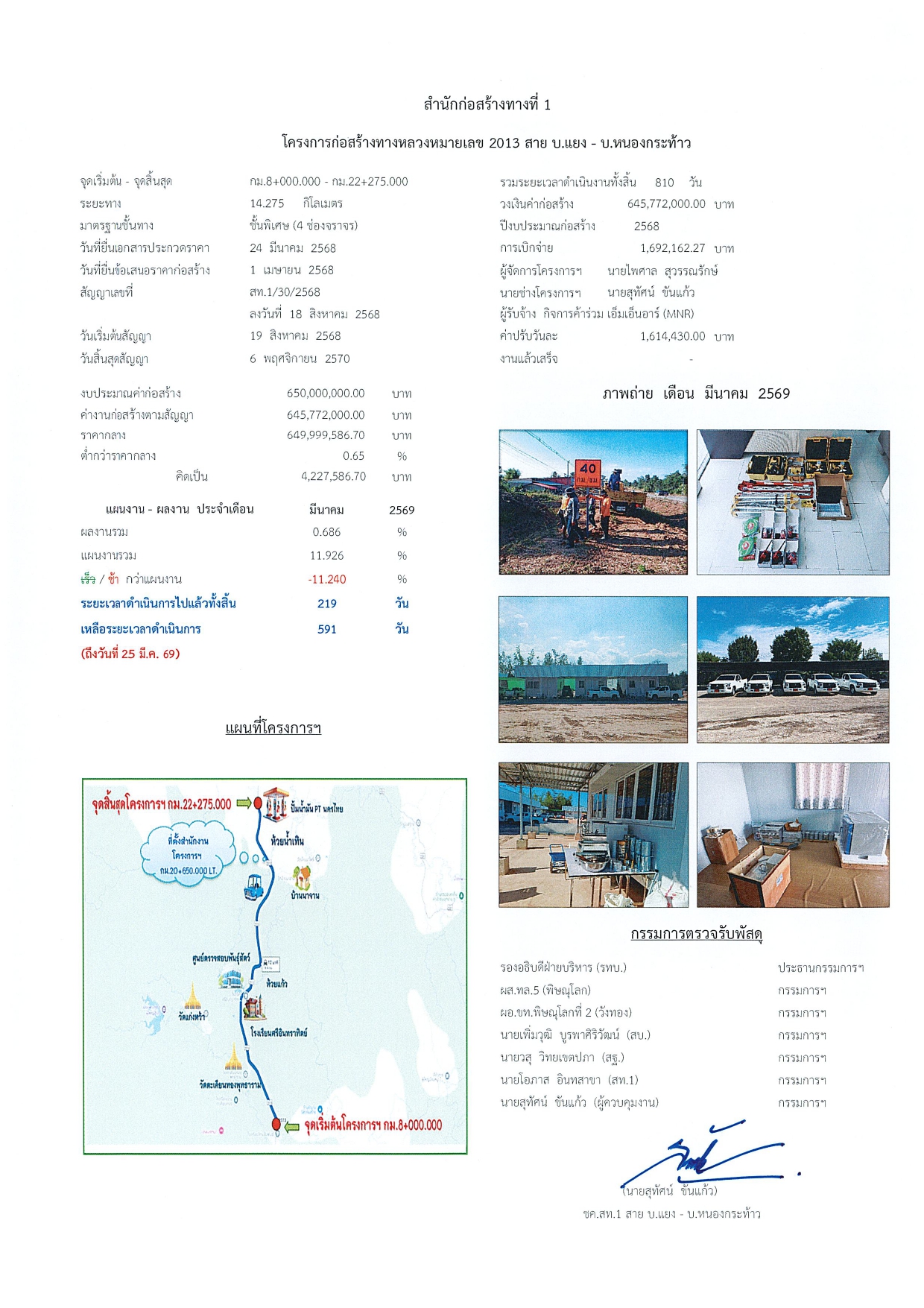 โครงการก่อสร้างทางหลวงหมายเลข 2013 สาย บ.แยง - บ.หนองกระท้าว