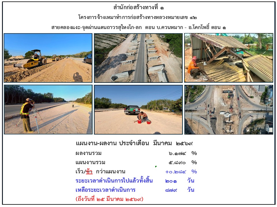 โครงการจ้างเหมาทำการก่อสร้างทางหลวงหมายเลข 42 สายคลองแงะ-จุดผ่านแดนถาวรสุไหงโก-ลก ตอน บ.ควนหมาก - อ.โคกโพธิ์ ตอน 1